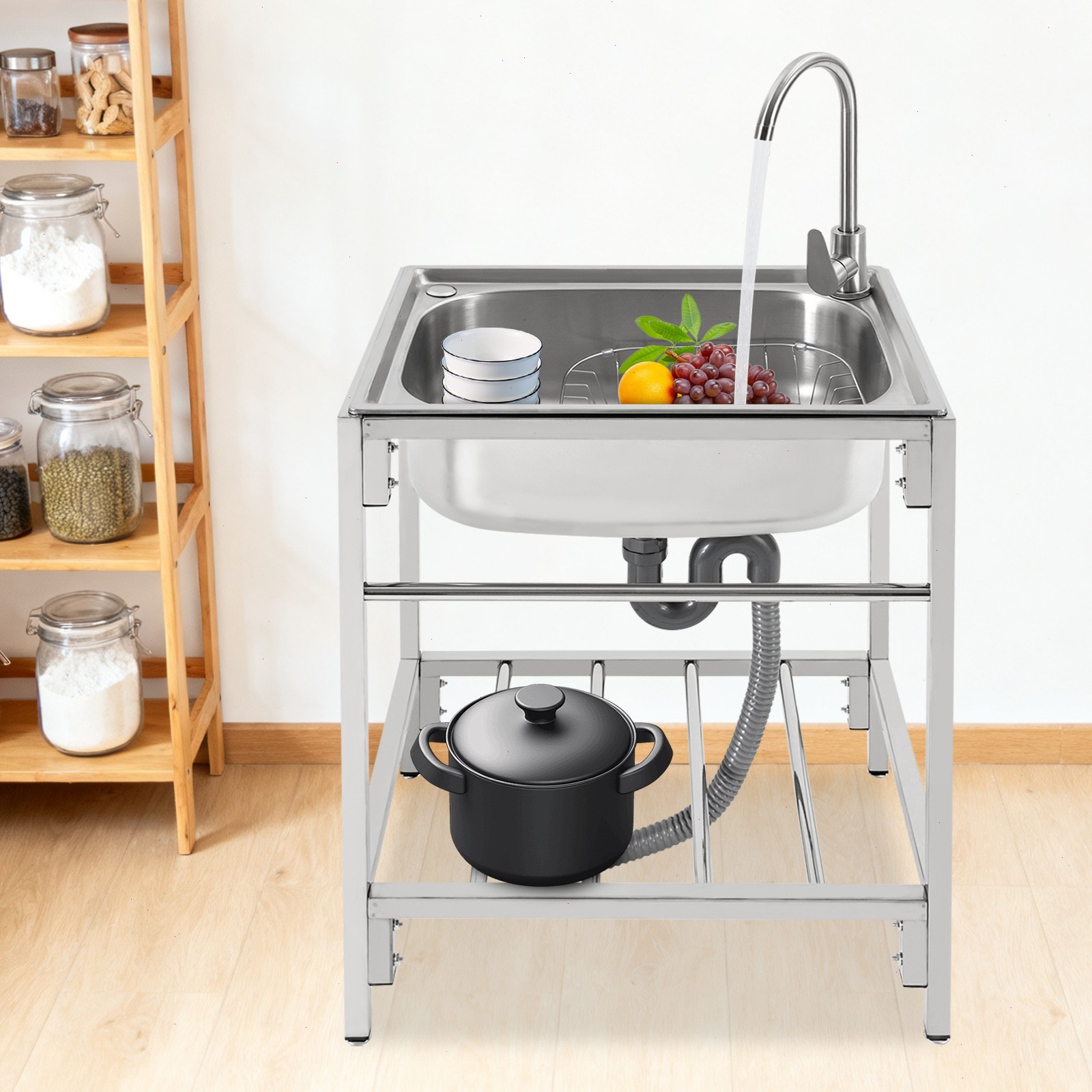 Commercial Stainless Steel Sink Outdoor Single-Bowl Utility Sink With Faucet US