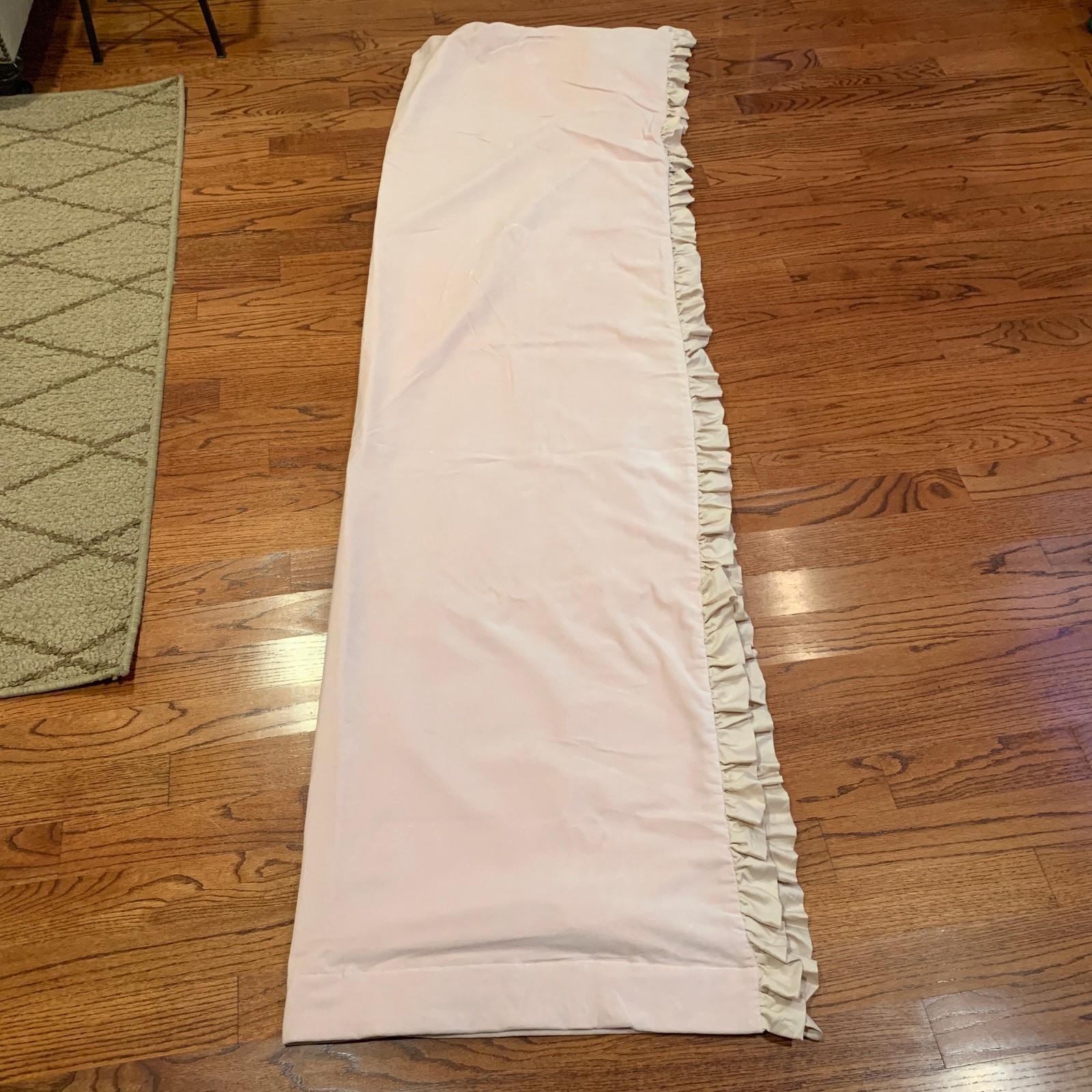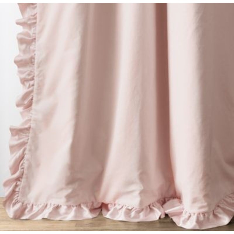 как выглядит RH Baby Child Washed Velvet Ruffle Drapery SINGLE Panel Pink 50" W x 94" L фото