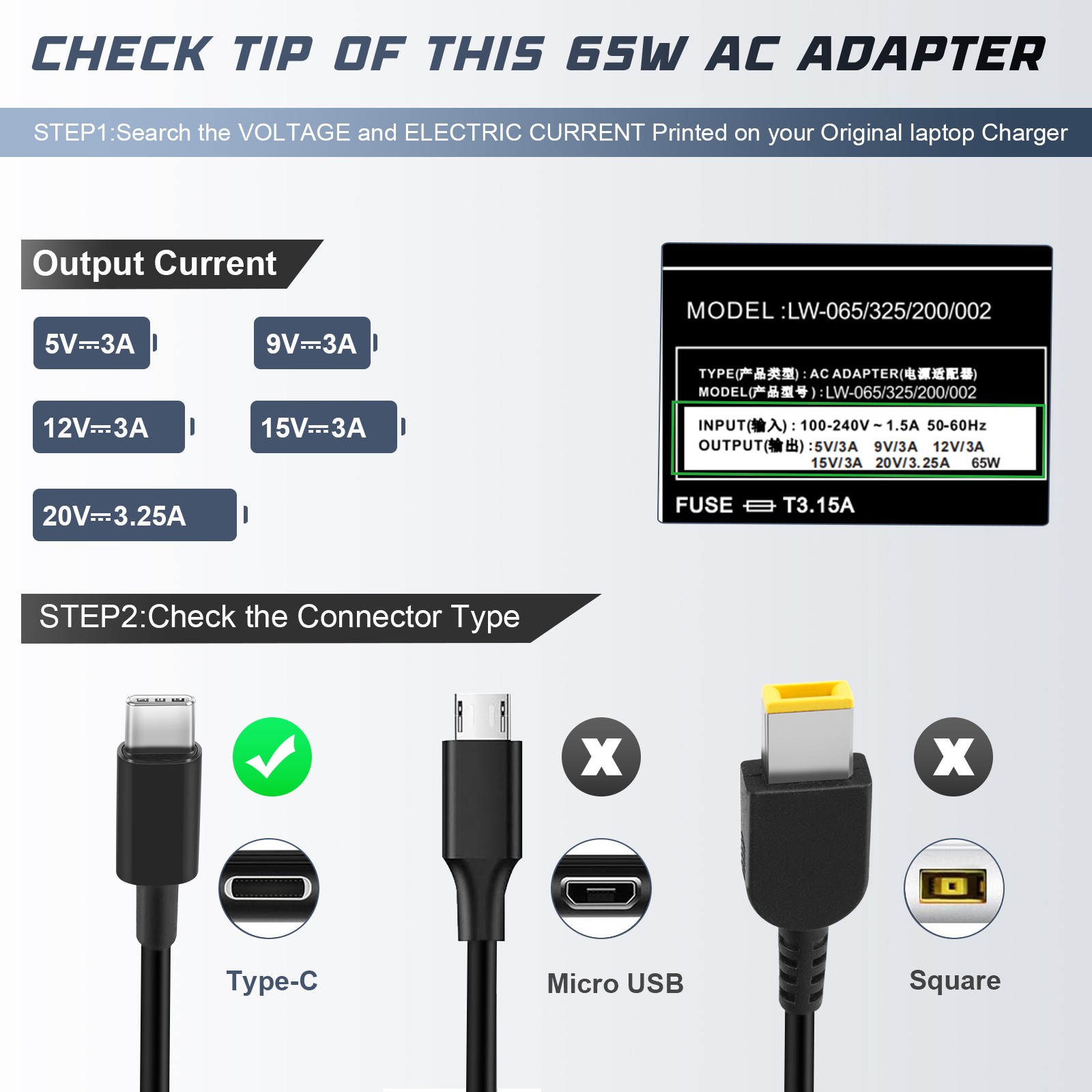 NEW 65W 20V 3.25A USB-C Type-C Adapter Charger For Lenovo ThinkPad X1 Carbon