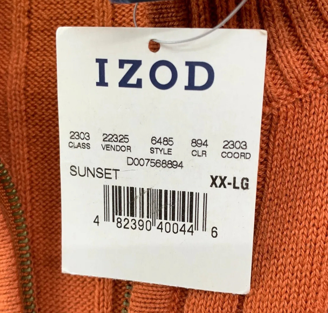 как выглядит IZOD knited Sweater Mens Size 2XL Orange sunset 1/2 Zip Long Sleeves pullover фото