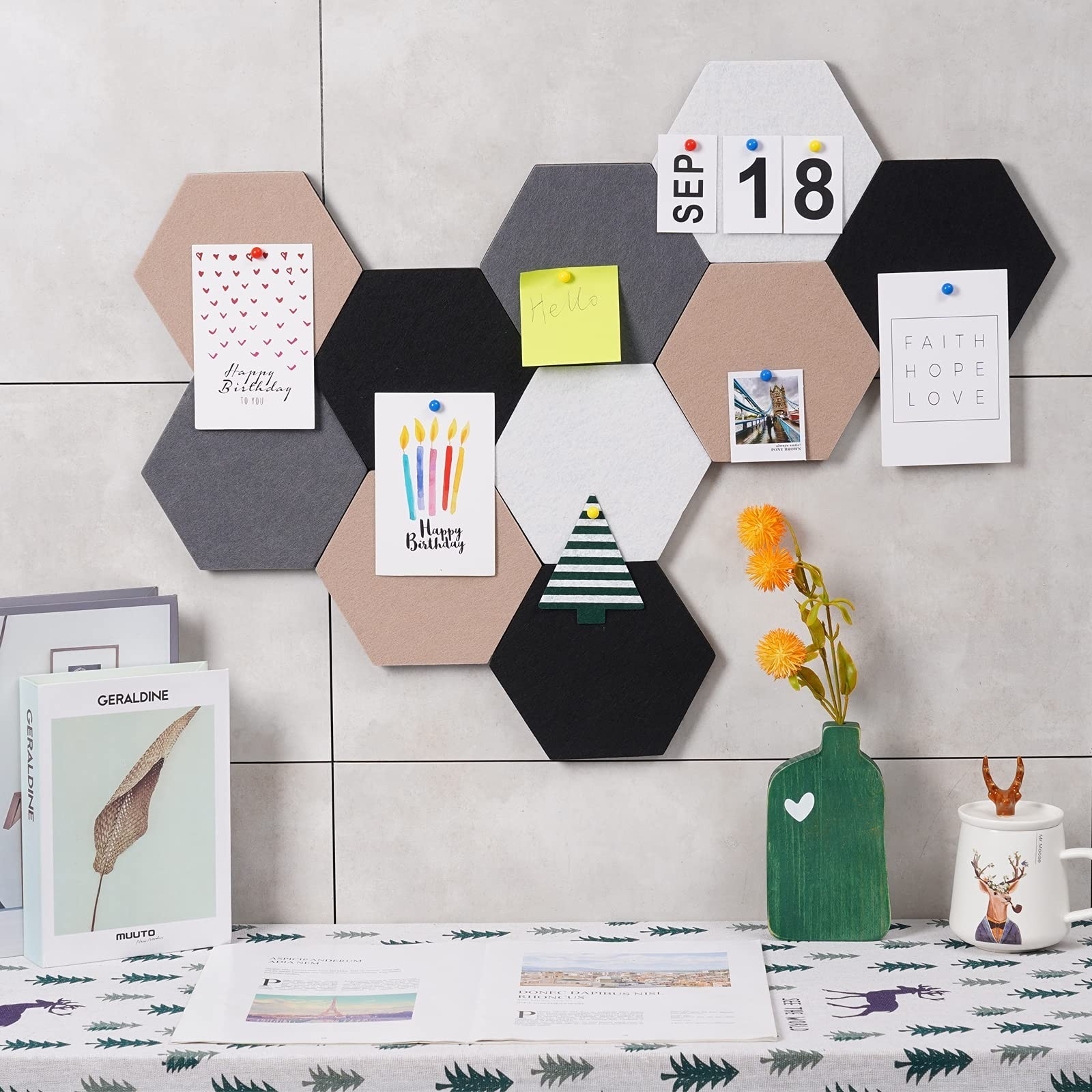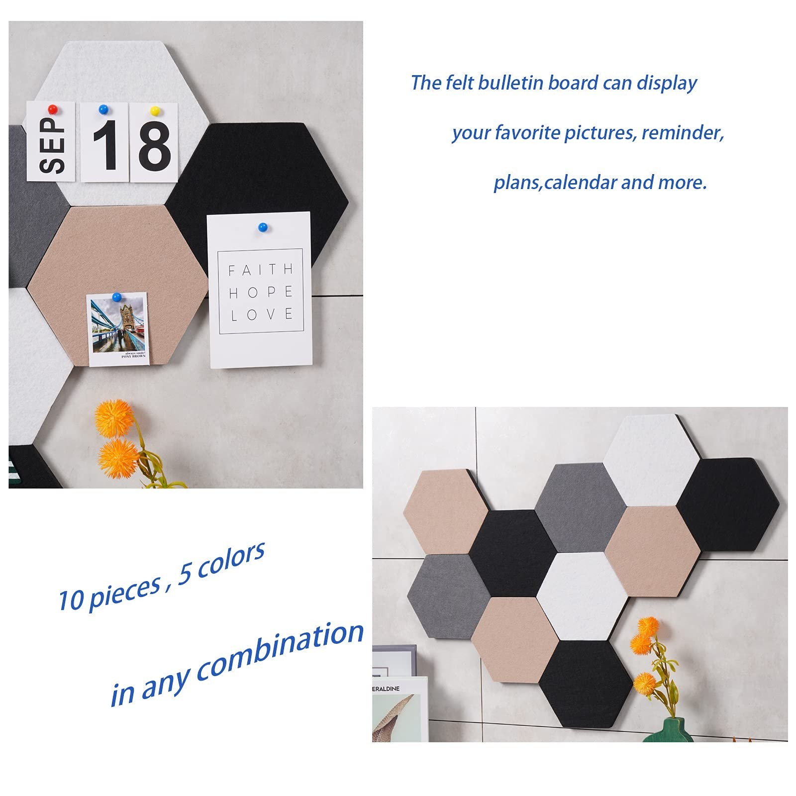 Afumazi 10Pcs Self Adhesive Felt Board Tiles Hexagon Bulletin Board for Walls...