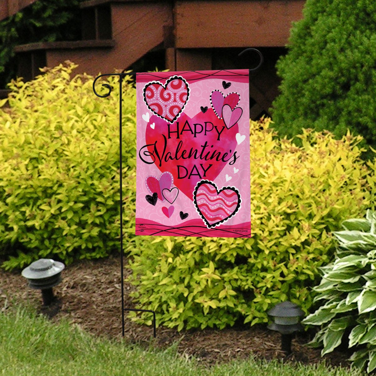 как выглядит Briarwood Lane Patterned Valentines Hearts Double Sided Garden Flag фото