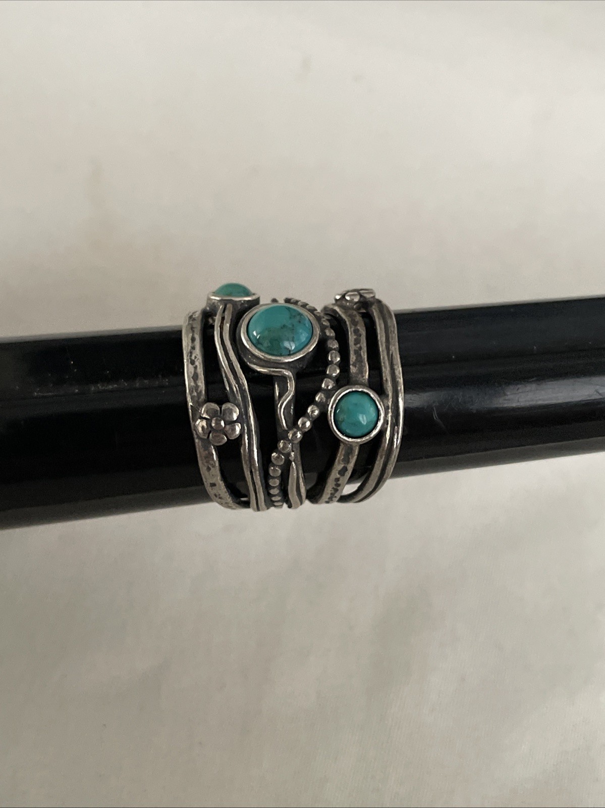 Sterling Turquoise Ring Israel Size 7.5 Signed