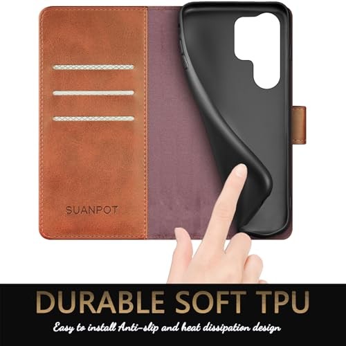 Light Brown Wallet Case for Samsung Galaxy S25 Ultra with RFID Blocking Holder
