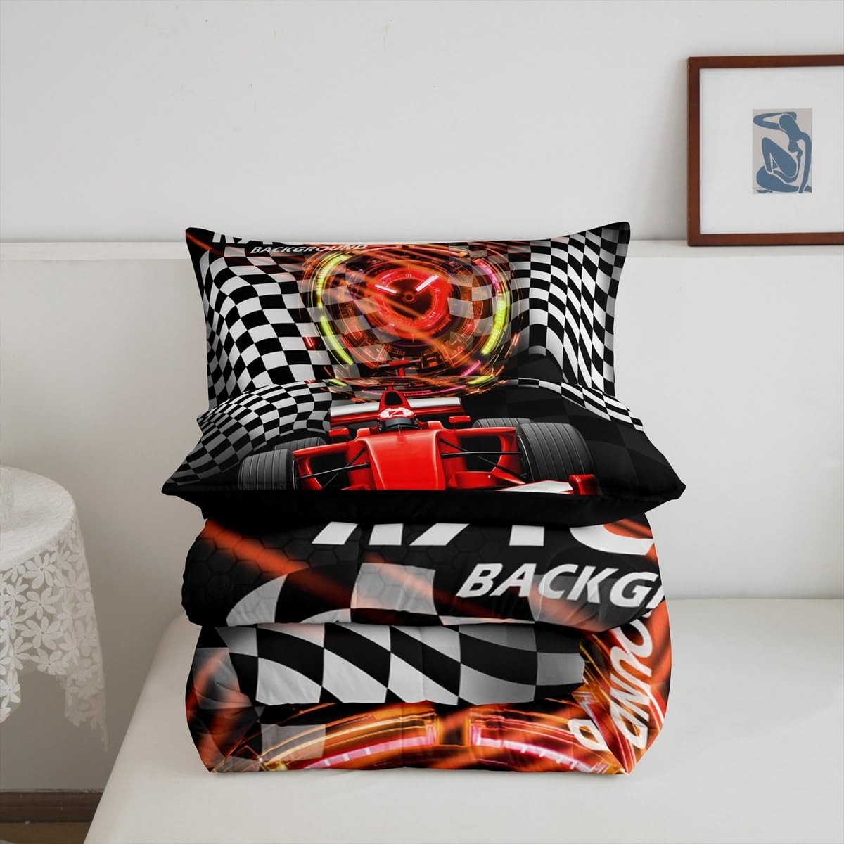 Kids Red Racing Car Comforter Set Twin Size, Extreme Sports Duvet Insert Kart...