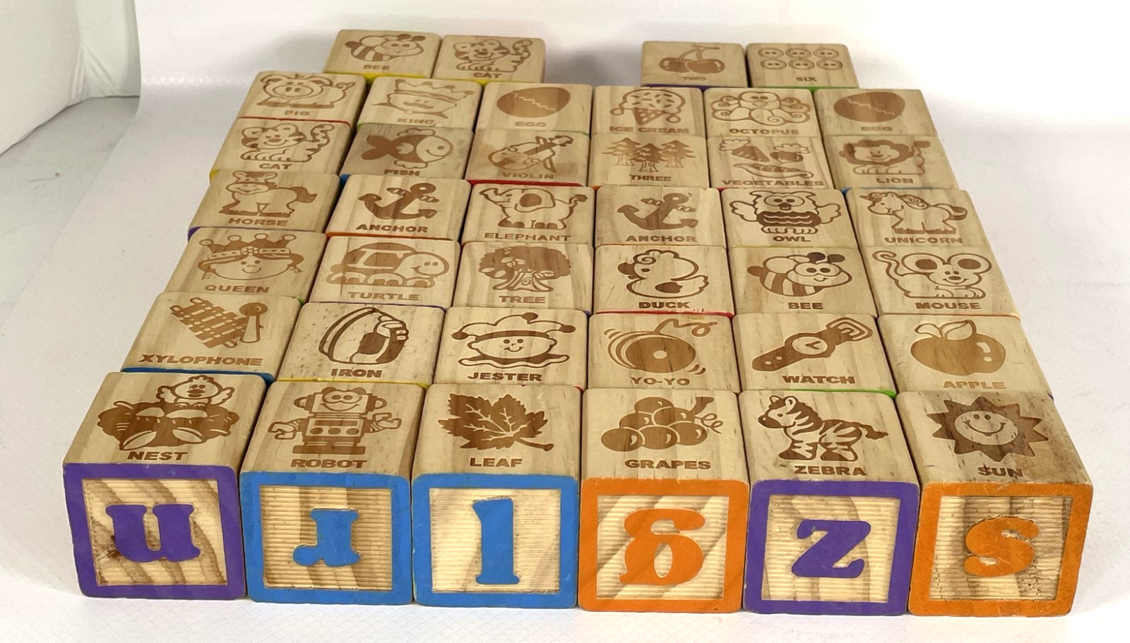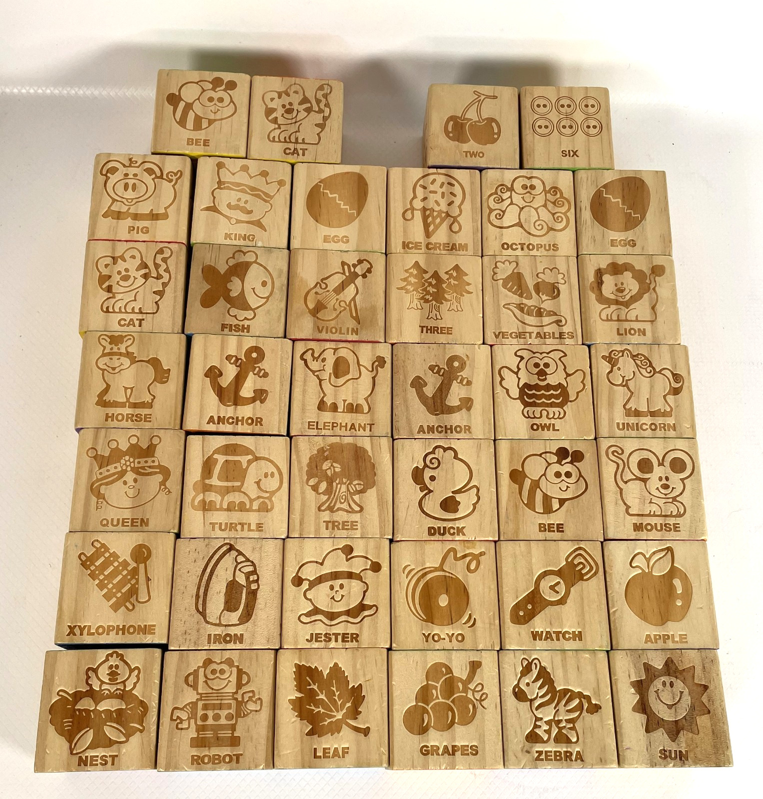 как выглядит Lot 40 Vintage Wooden Toy Stacking Building Blocks Alphabet, Pictures, Numbers фото