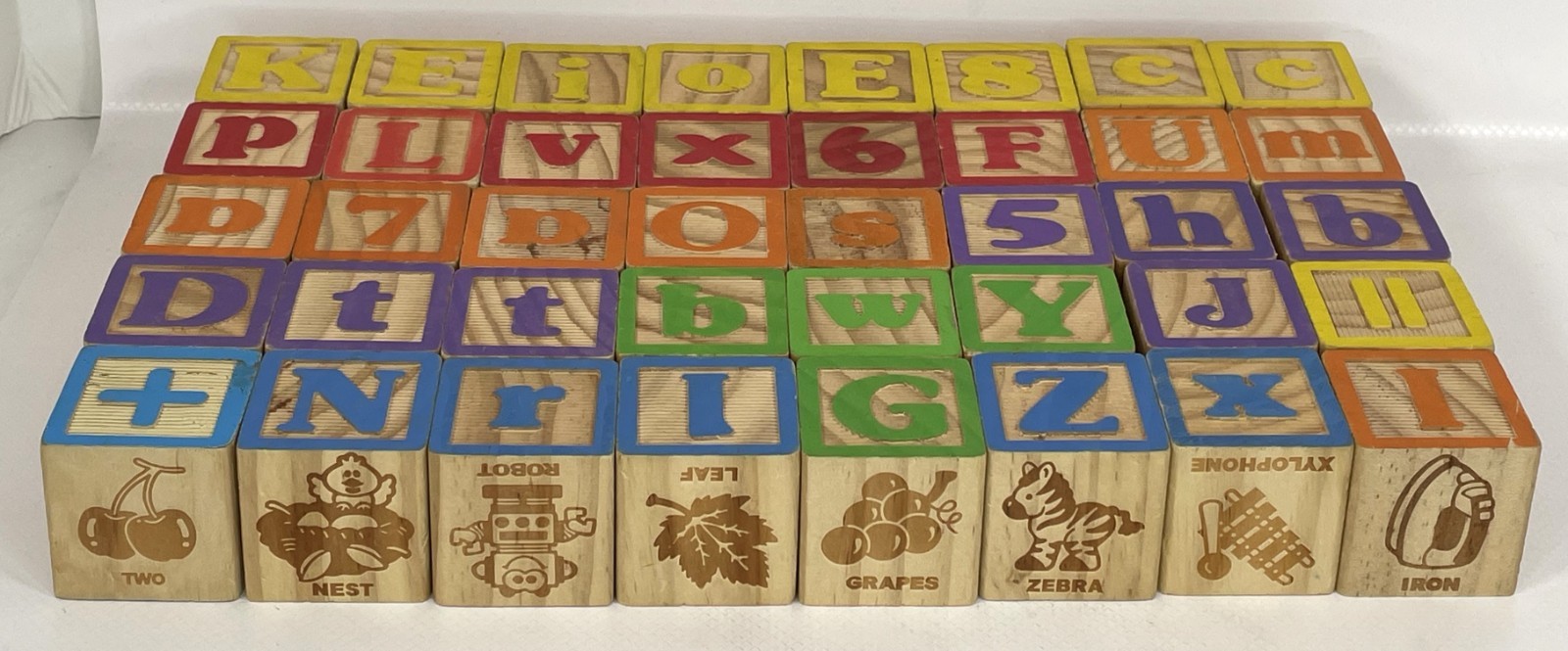 Lot 40 Vintage Wooden Toy Stacking Building Blocks Alphabet, Pictures, Numbers