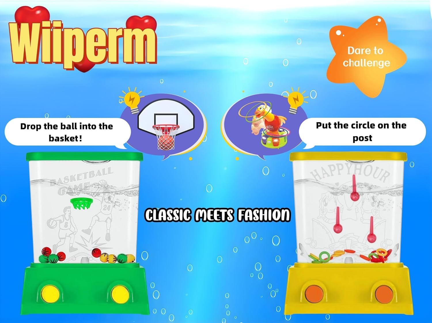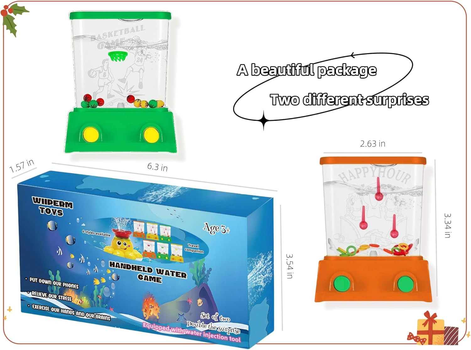 2 Pieces Water Handheld Games for Kids Fish Ring Toss Basketball Retro Mini Or