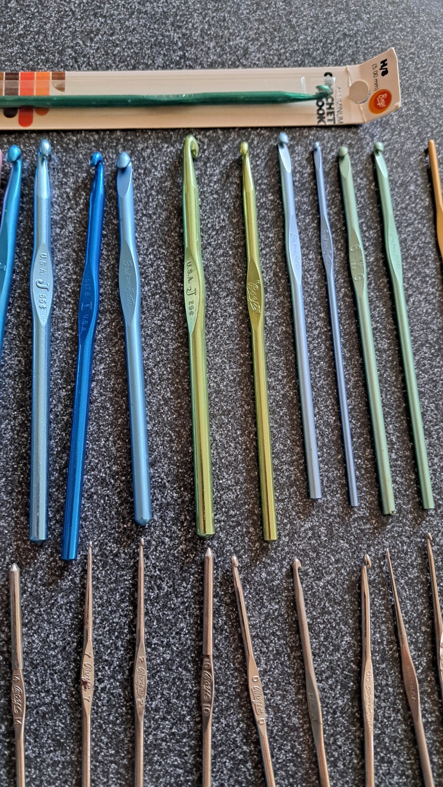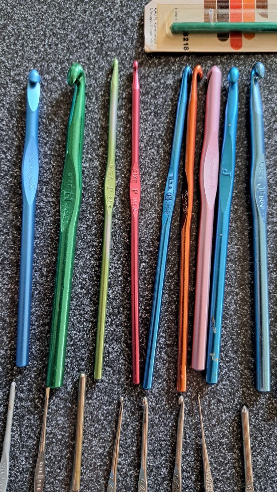 как выглядит 44 Boye Susan Bates Hero crochet hooks different sizes фото