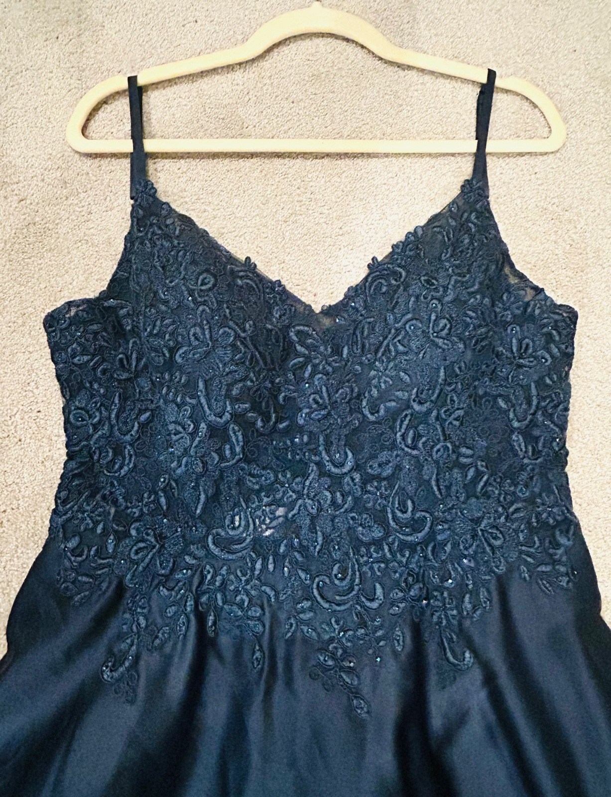 как выглядит Prom Dress Size US 16, Dark Navy, Excellent, Once Used, Satin, Floor Length фото