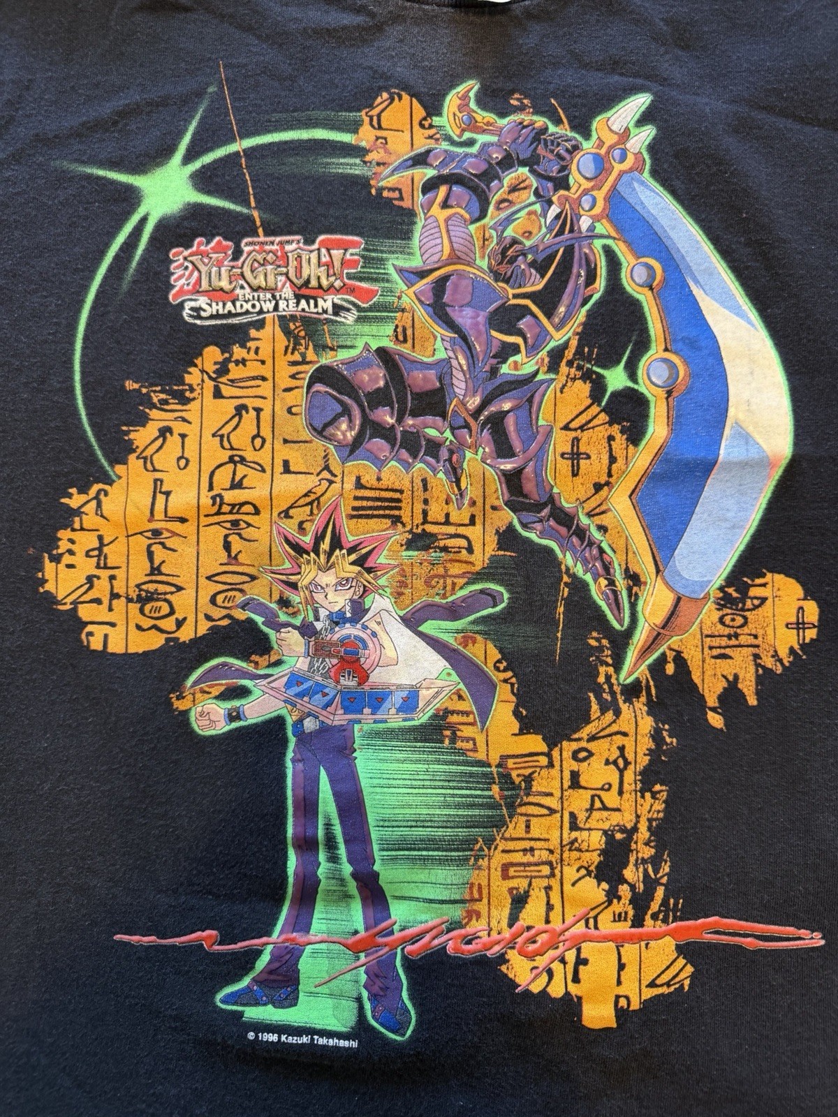 как выглядит Vintage Yu-Gi-Oh 1996 Graphic T-Shirt Black Youth XL Shirt Sleeve фото