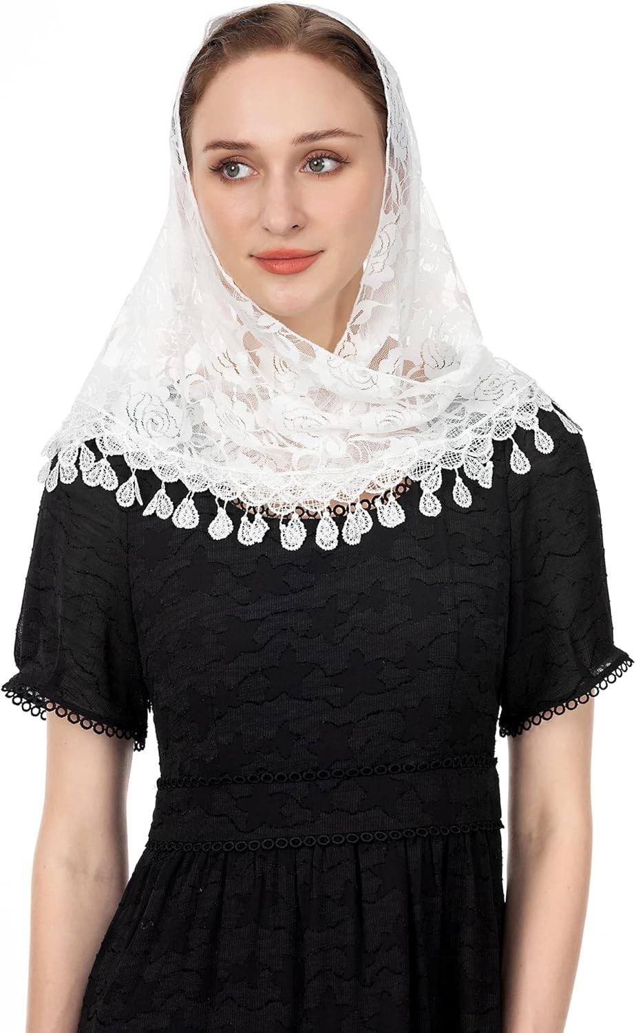 Wgior Triangle Veil for Church - Lace Chapel Catholic Mass Head Covering Scarf M