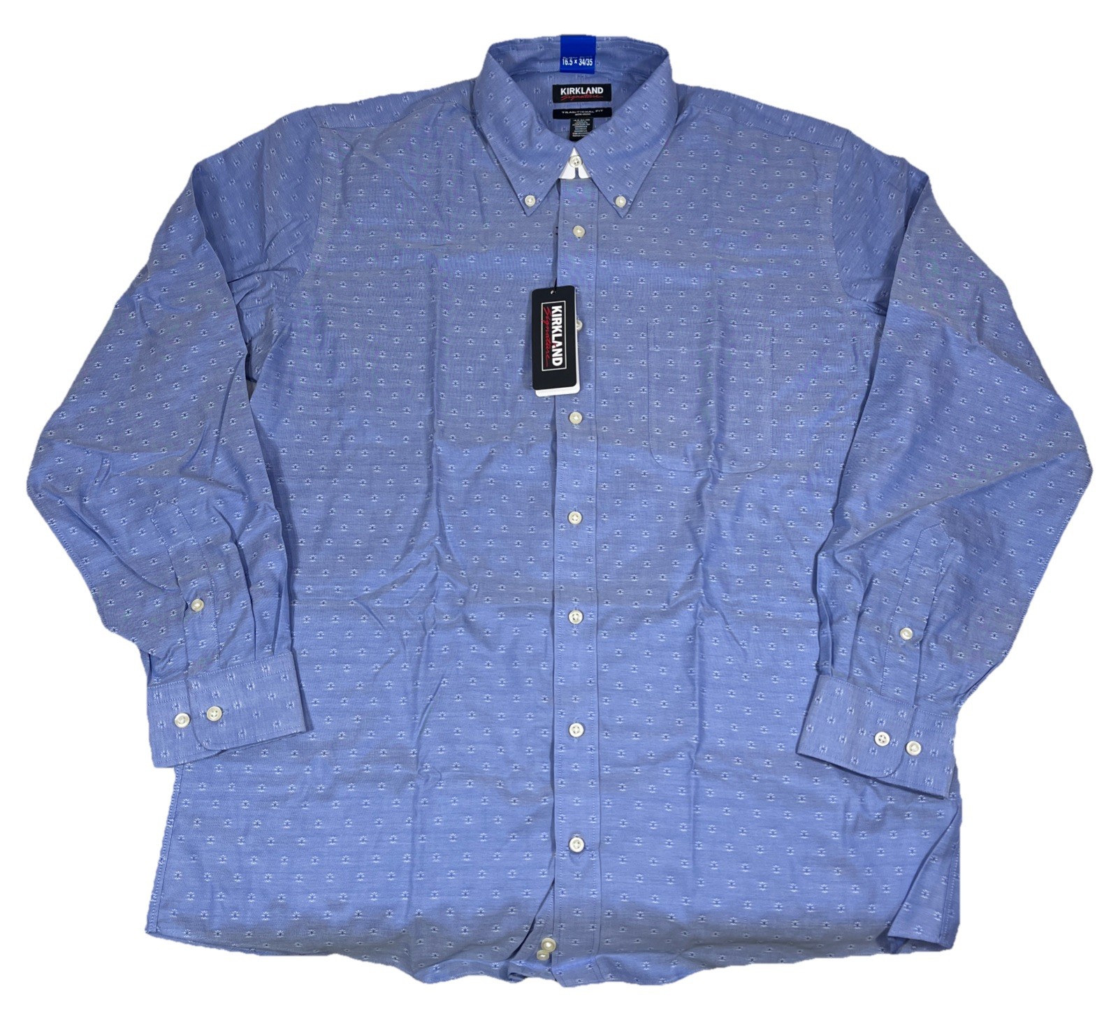 Kirkland Signature Traditional Fit Dress Shirt, Blue, Men s L 16.5 34/35 NEW