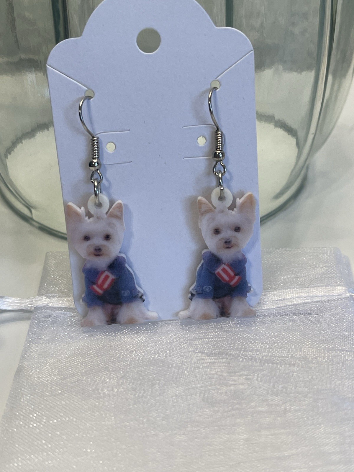 Cute Terrier Dog Acrylic Dangle Drop Earrings Cartoon Animal Novelty Jewelry