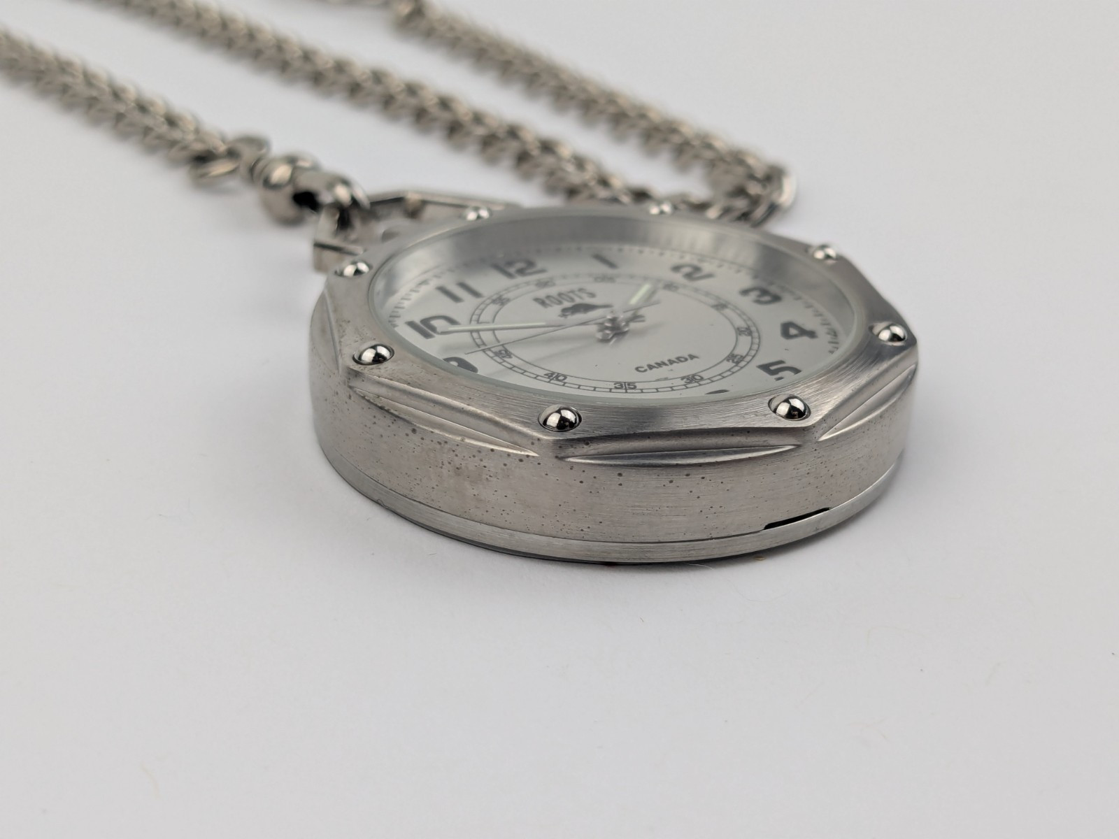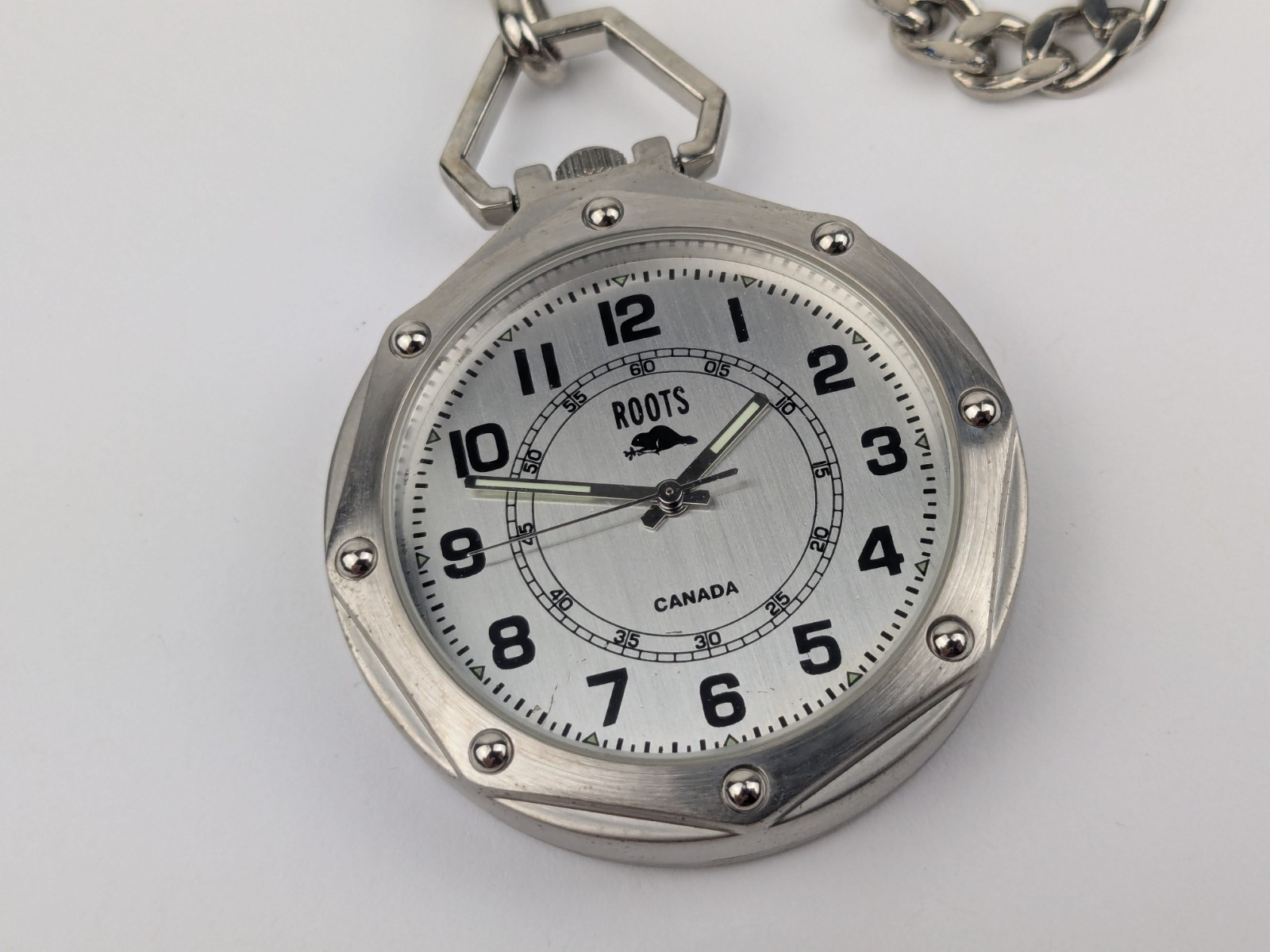 Vtg NEW OLD STOCK Roots Canada Pocket Watch R209 W/ Fob Chain 44mm