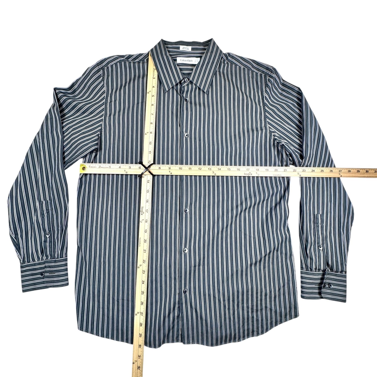 Calvin Klein Shirt Mens XL Blue Stripe Cotton Dress Button Front Long Sleeve