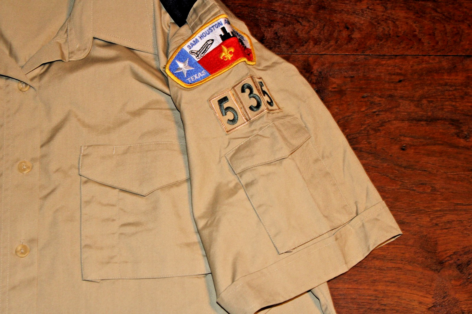 как выглядит Boy Scouts of America BSA Womens Shirt Tan Large Sewn Patches Short Sleev фото