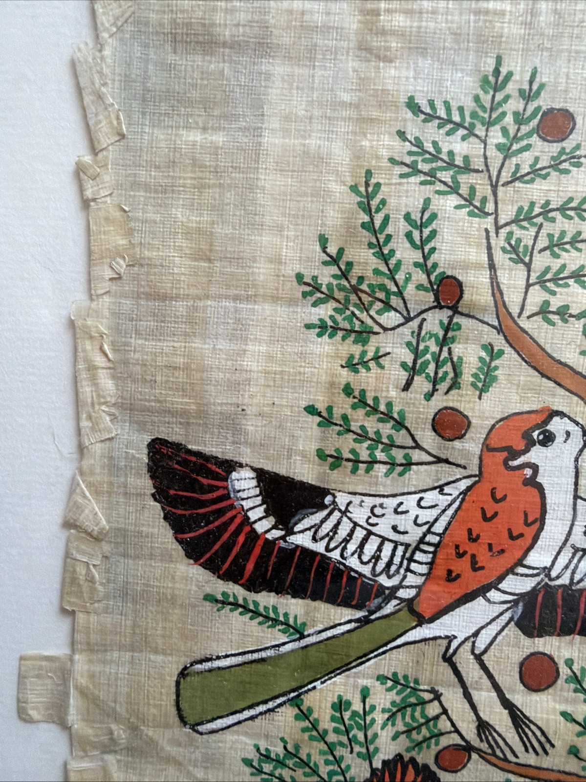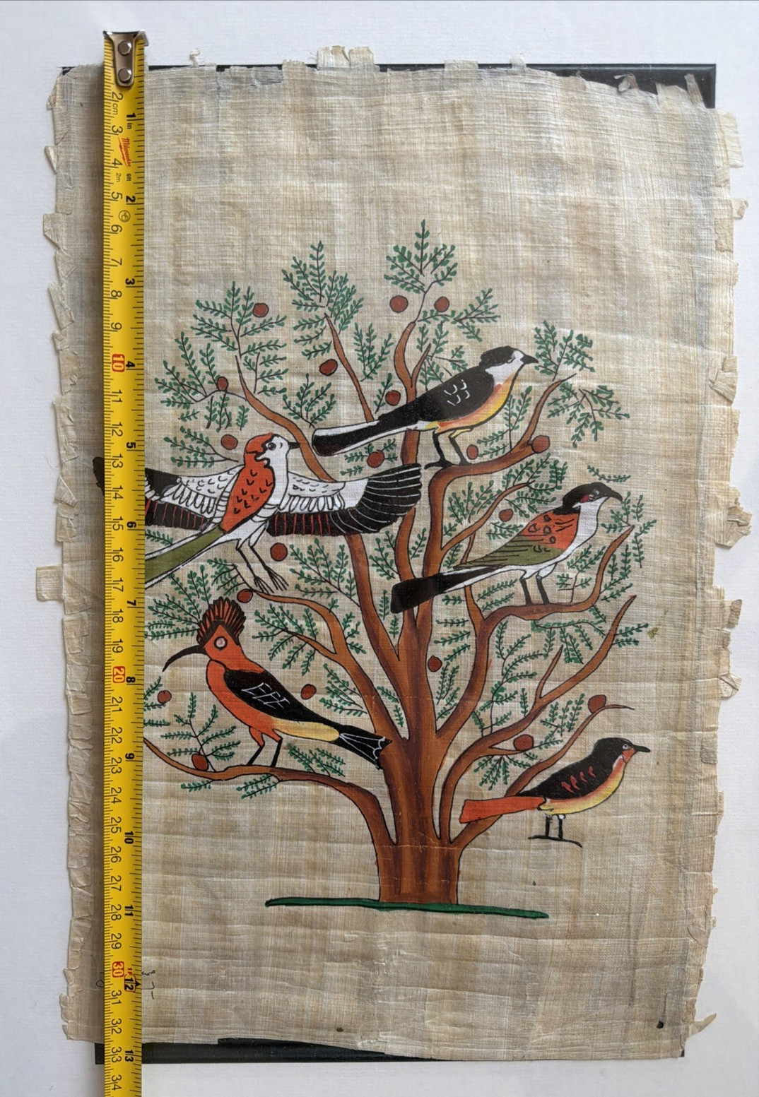 • Egypt Tree of Life Painting on Papyrus 5 Birds Signed