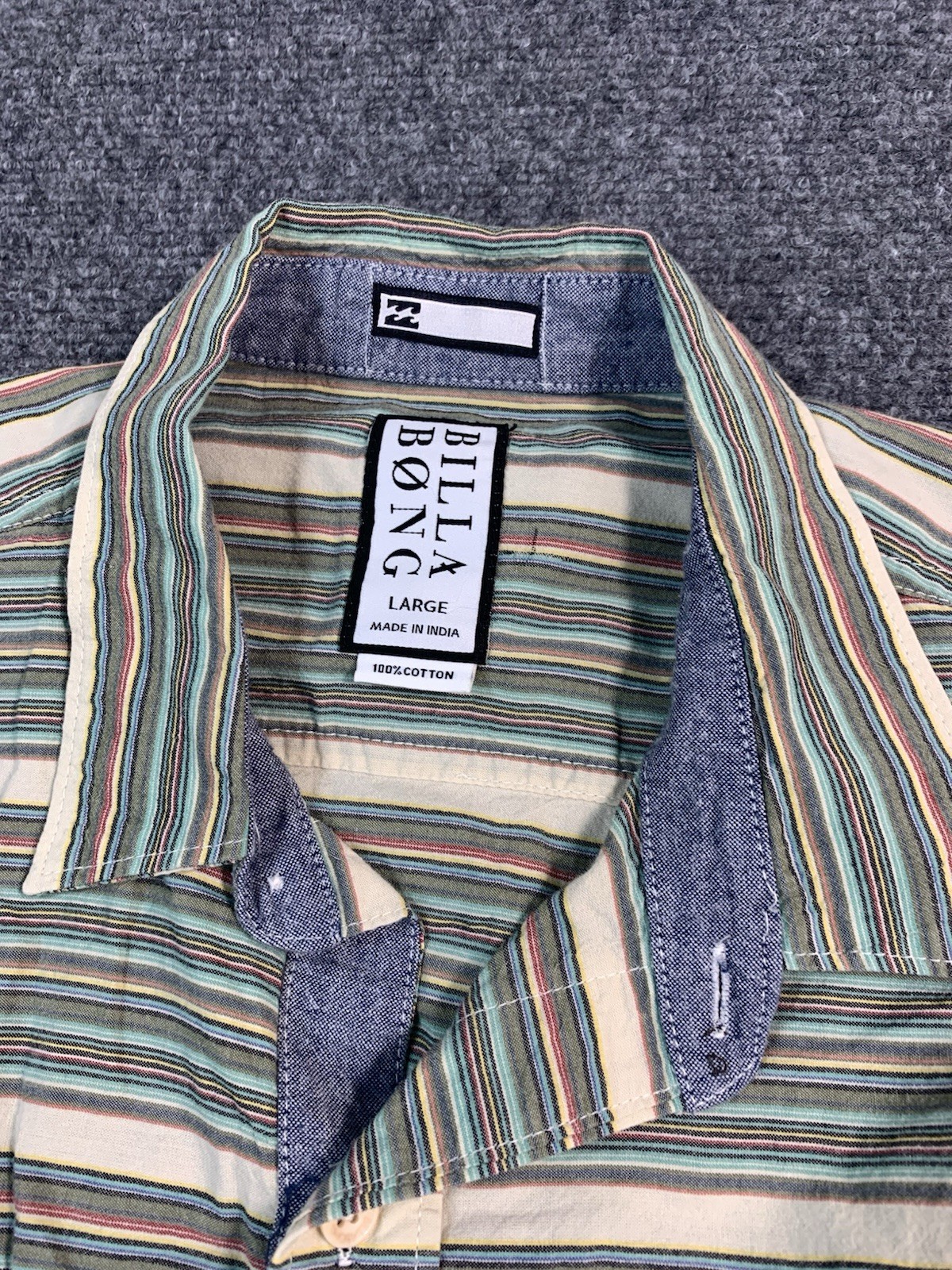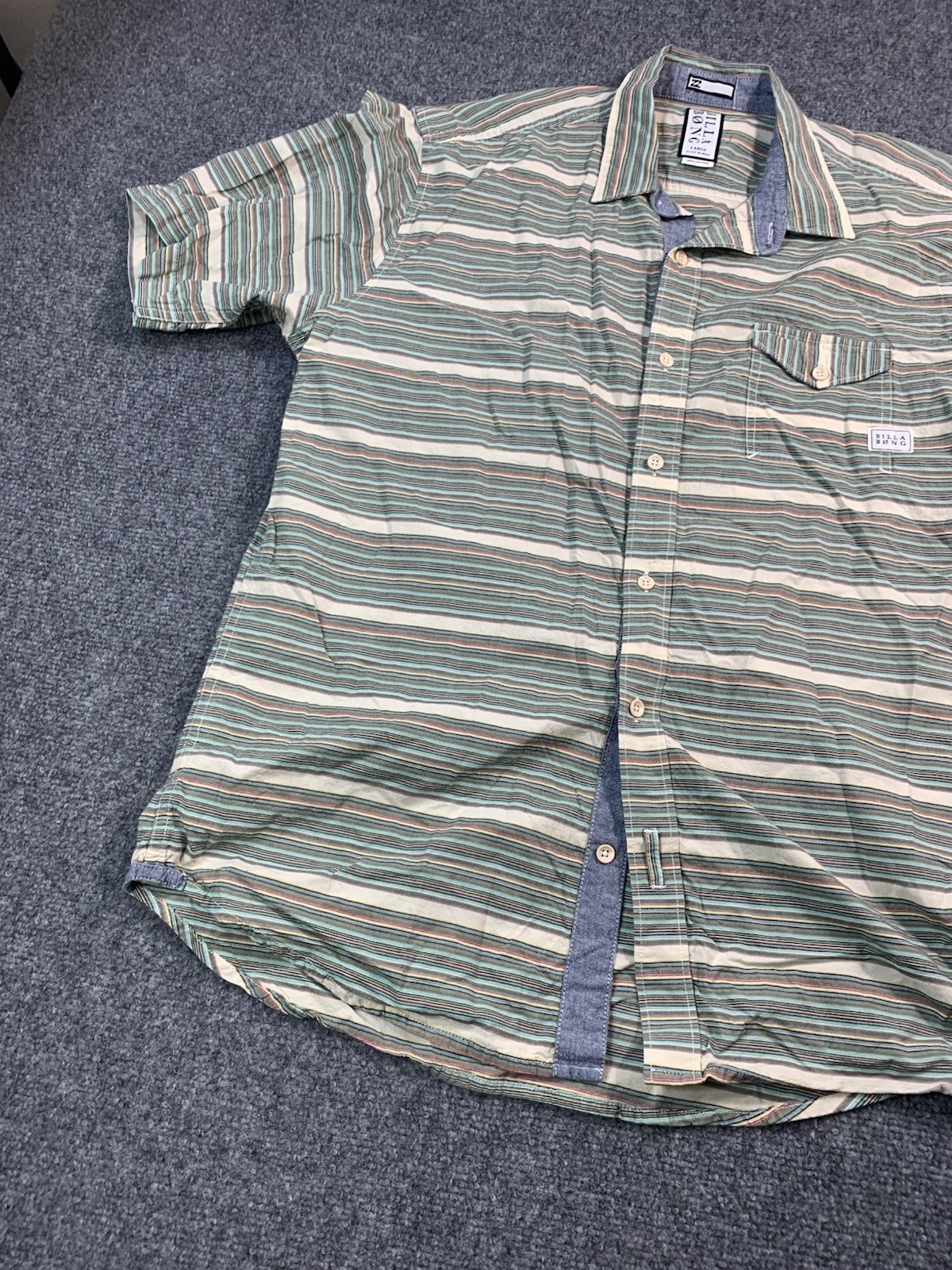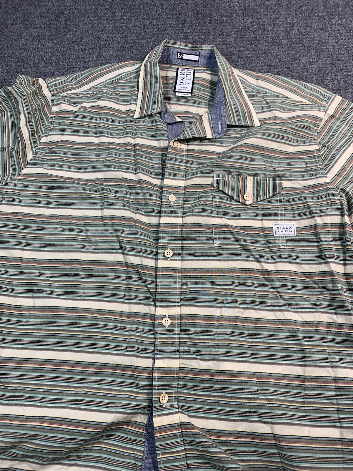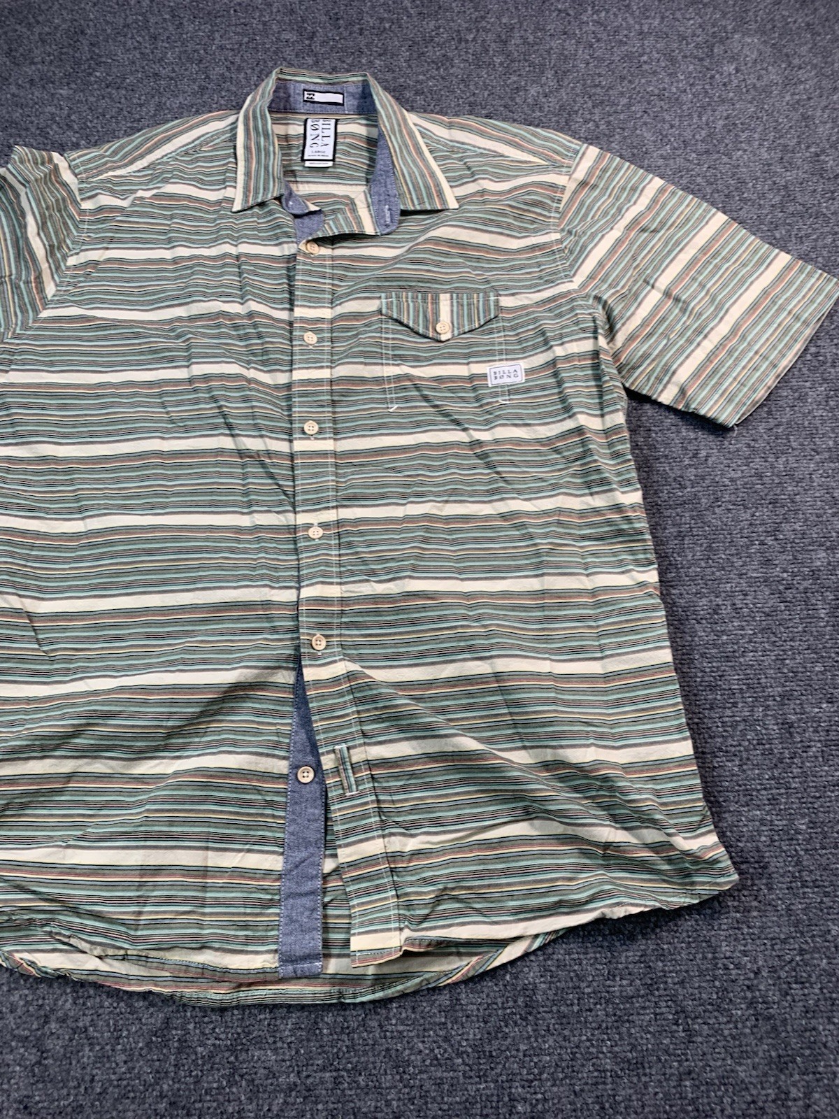 как выглядит Billabong Shirt Mens Large Green Striped Short Sleeve Button Up фото