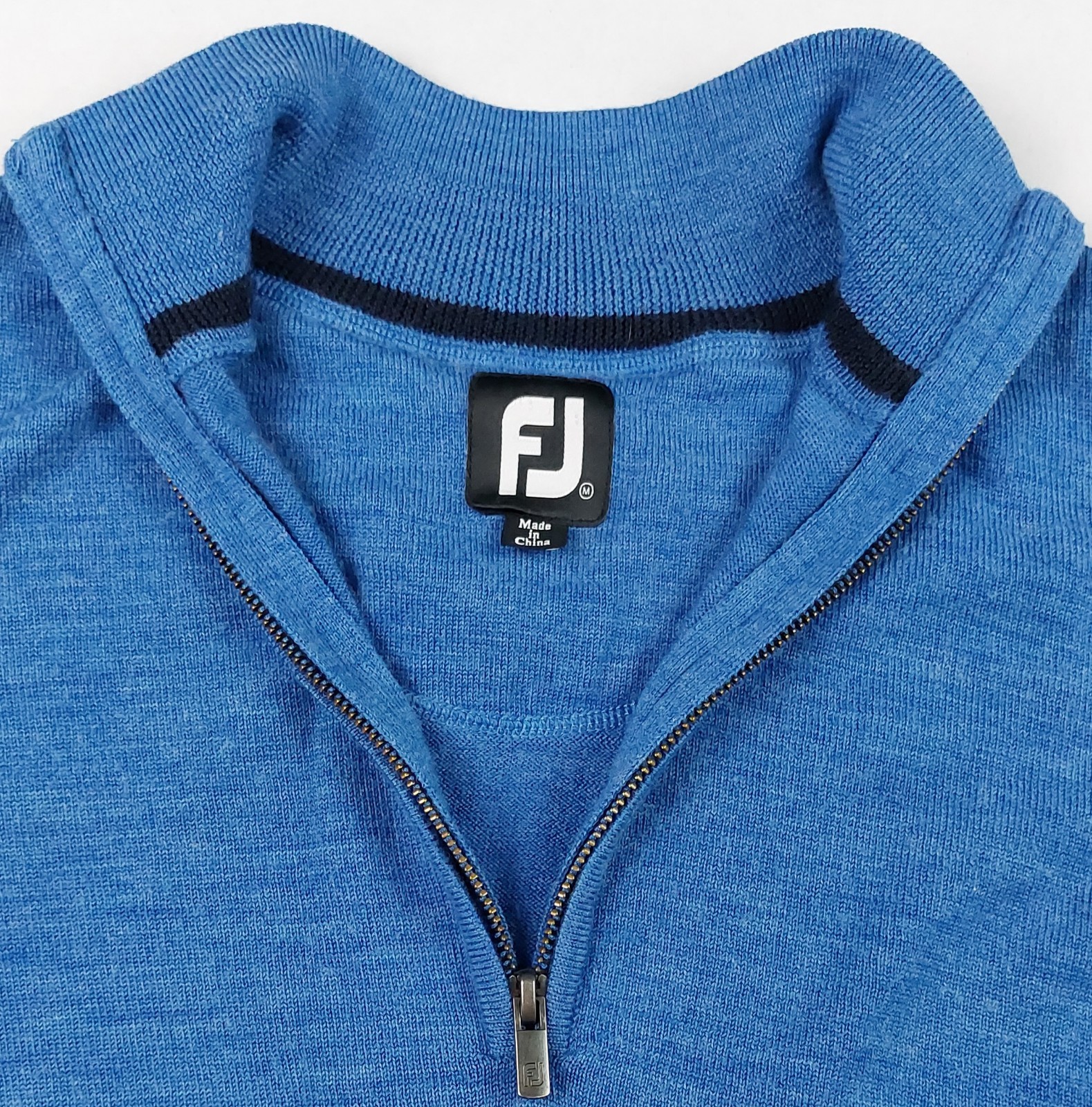 как выглядит Footjoy Sweater Mens Size Medium Blue 1/4 Zip Pullover 100 Wool NBGCC Logo фото