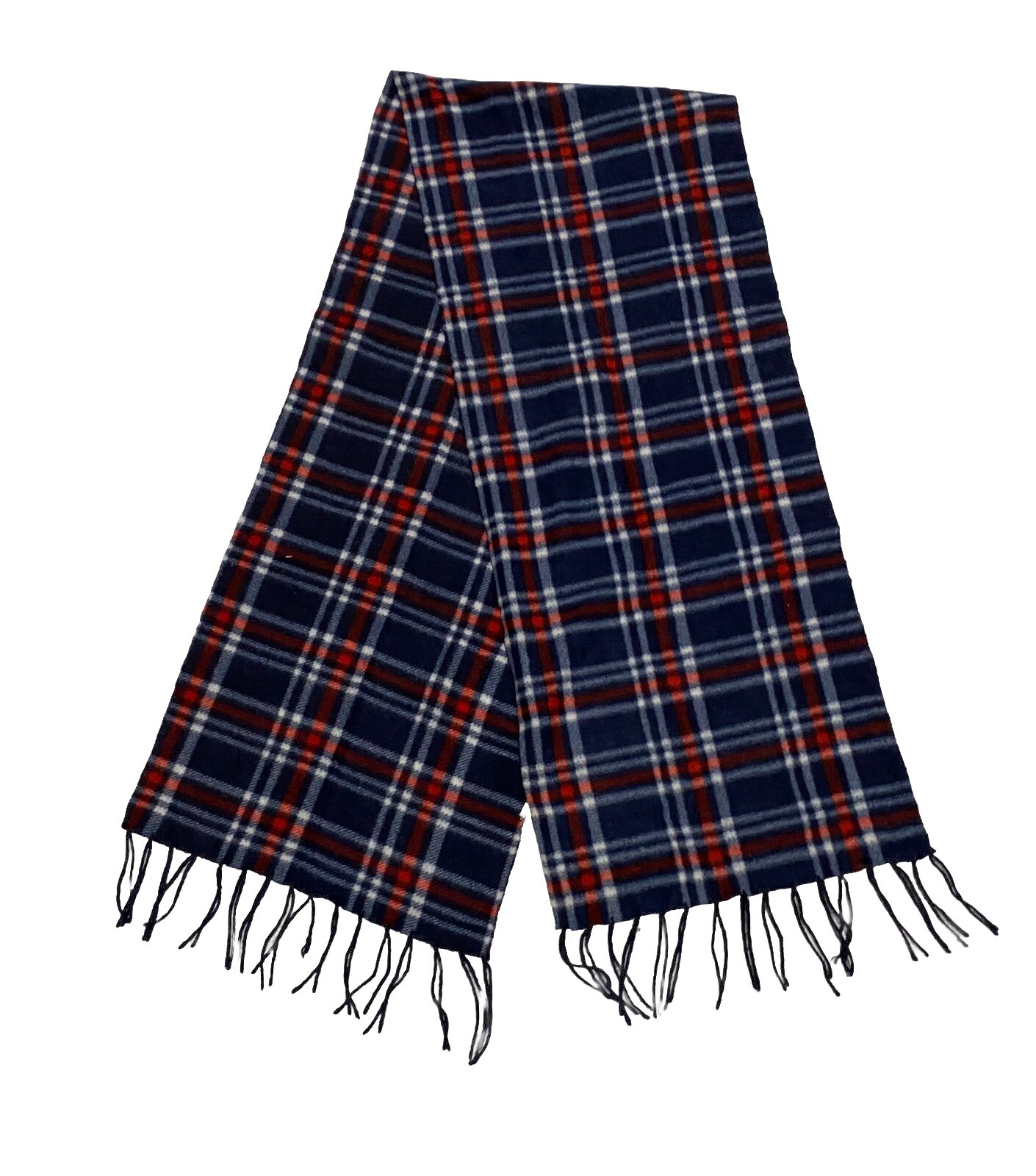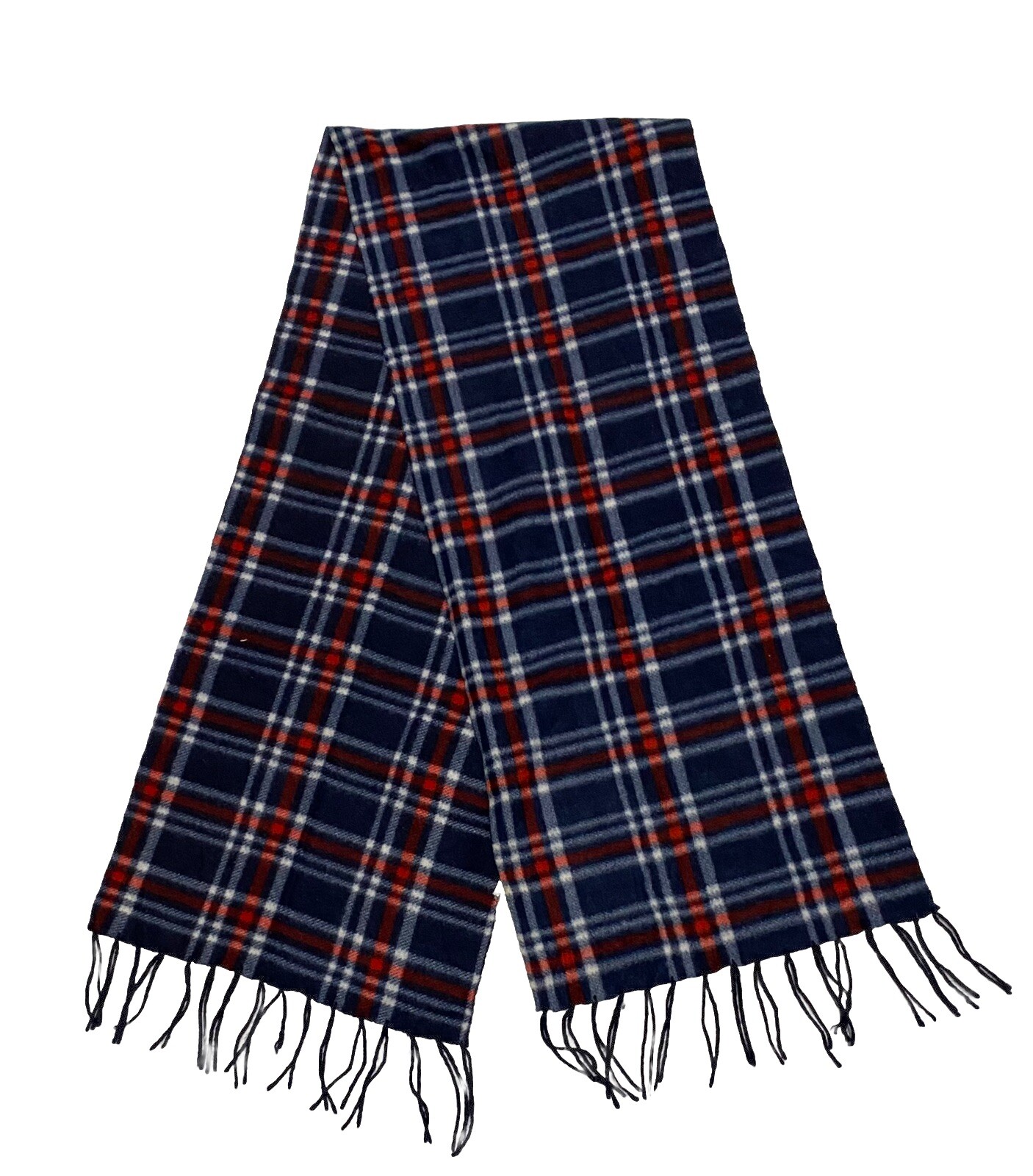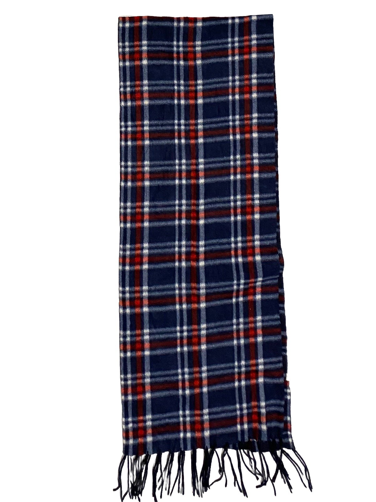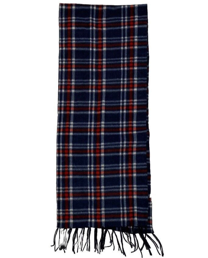 Vintage SCARF Plaid Black Red Blue Fringe 12 X 60 Clean Super Soft
