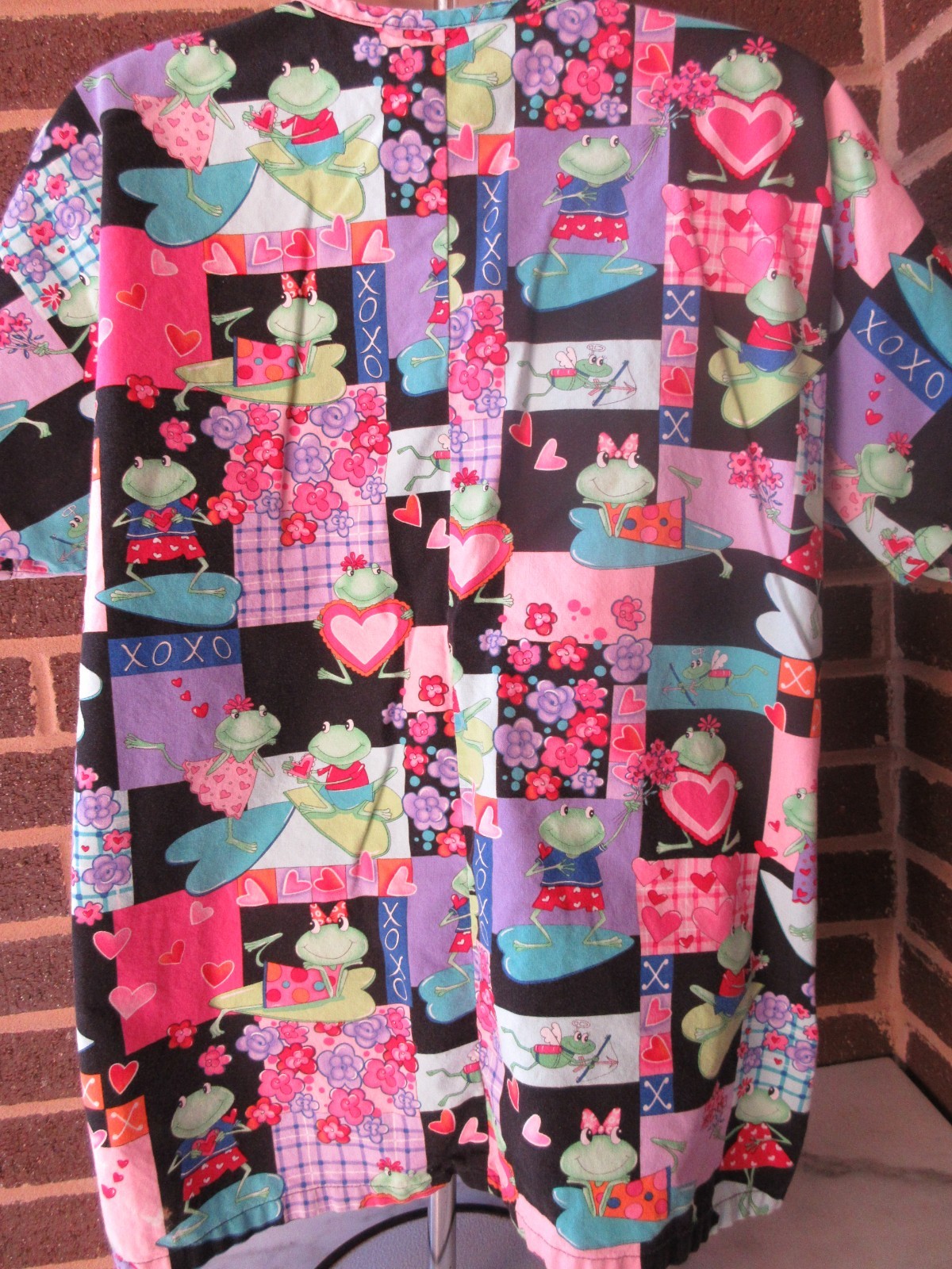 как выглядит Unbranded Handmade SCRUB TOP- Frogs/Flowers/Hearts Colorful- Measurements-Small фото