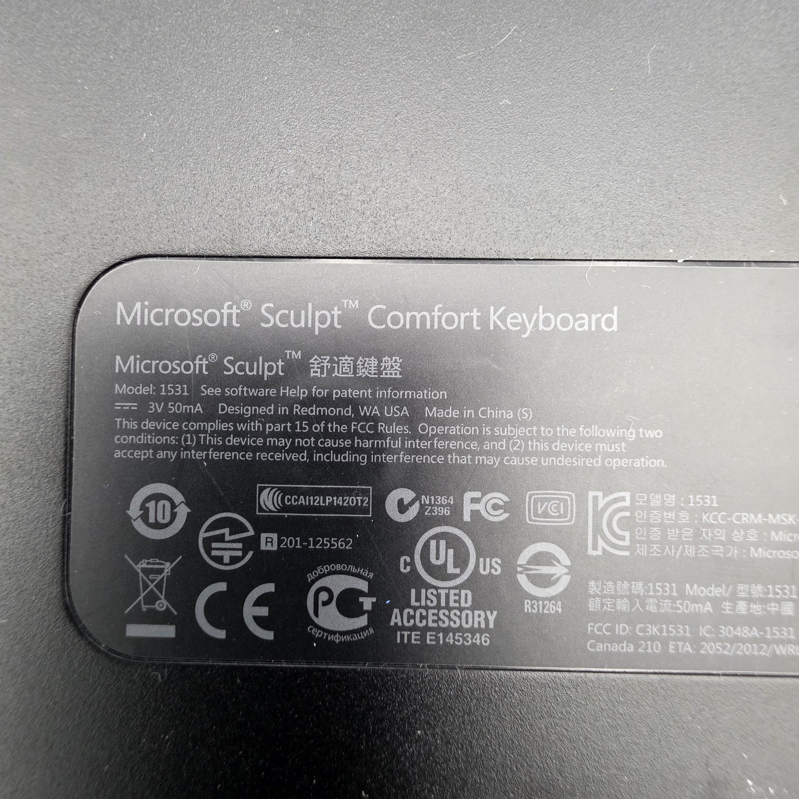 Microsoft Sculpt Wireless Keyboard Comfort Ergonomic KGR1173 1531 With FOB