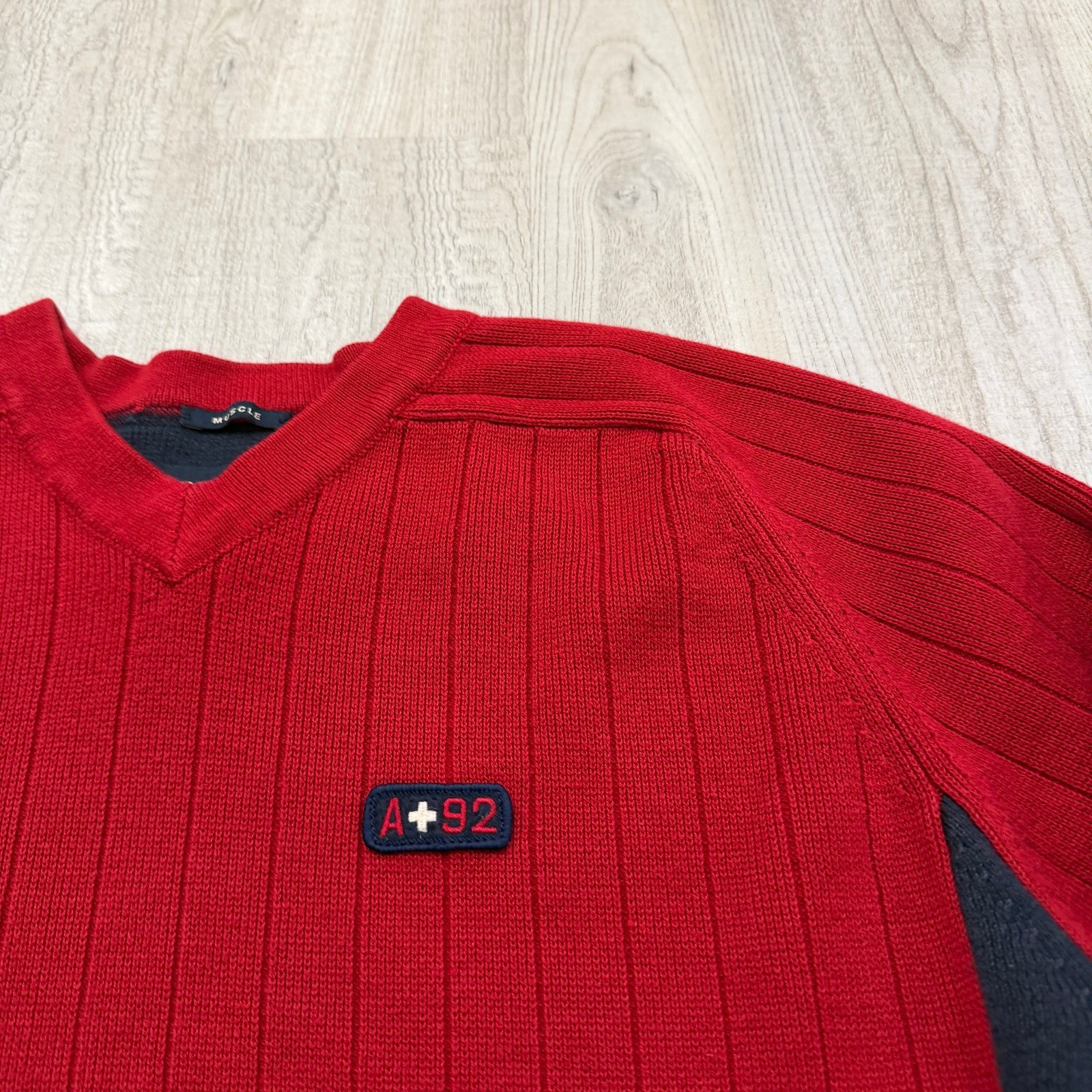 Vintage Abercrombie Fitch Muscle Sweater Men s XL Red V-Neck Ribbed Y2K Preppy