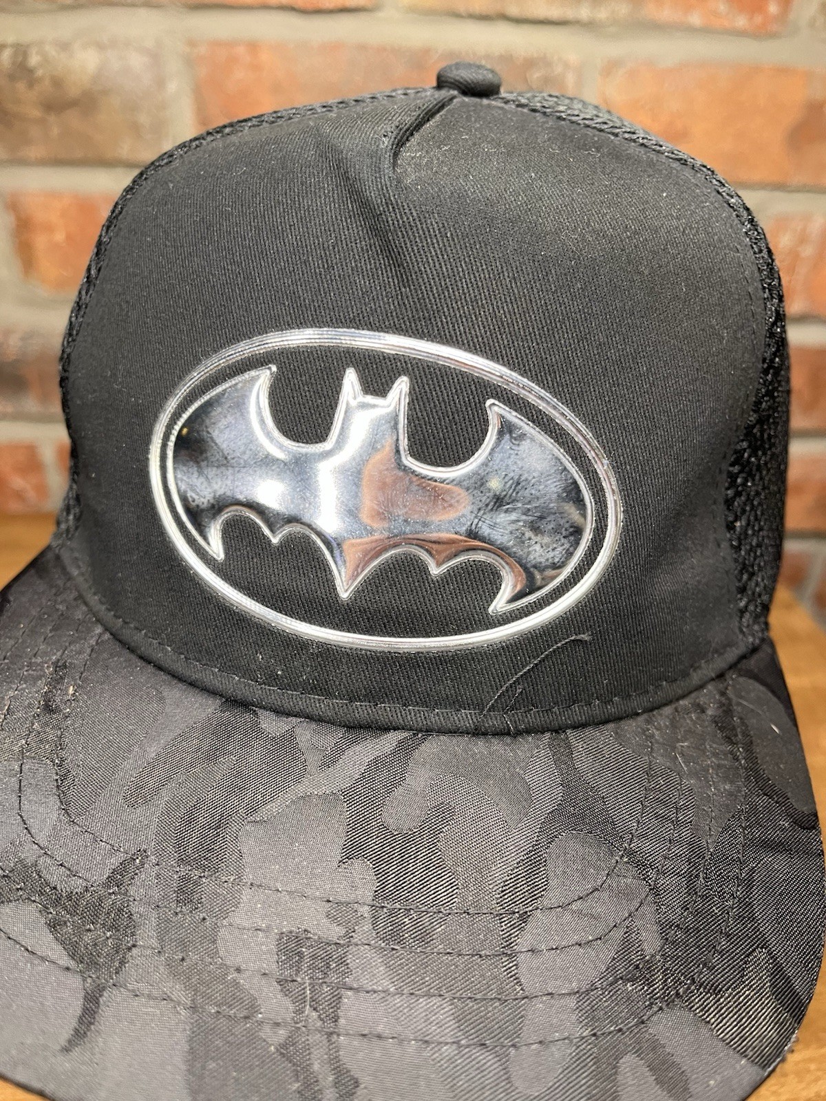 Batman Logo Black Camo Bill Mesh SnapBack Men s Small/Medium Hat