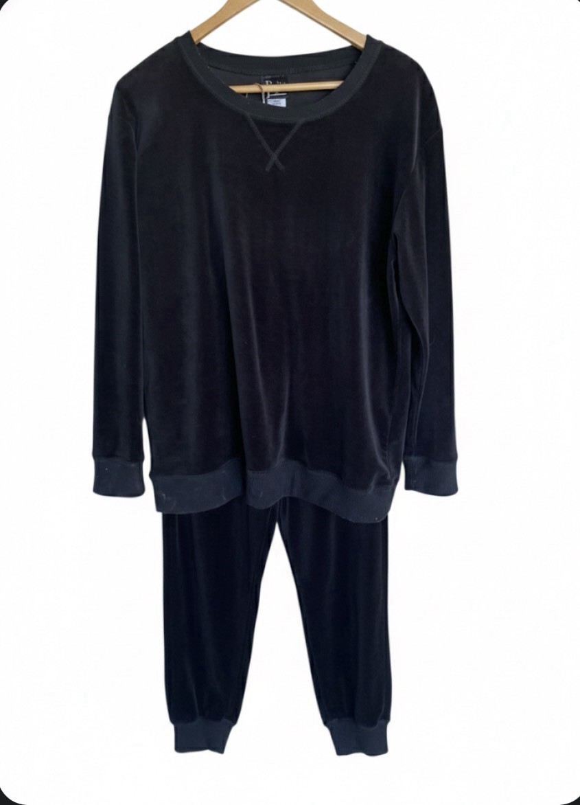 FELINA Luxe Velour Tunic Top and Jogger Set, Black, Size Large Plush