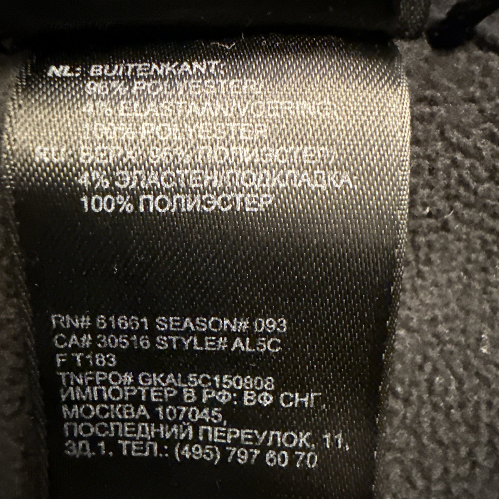 Outer Shell Material: Polyester