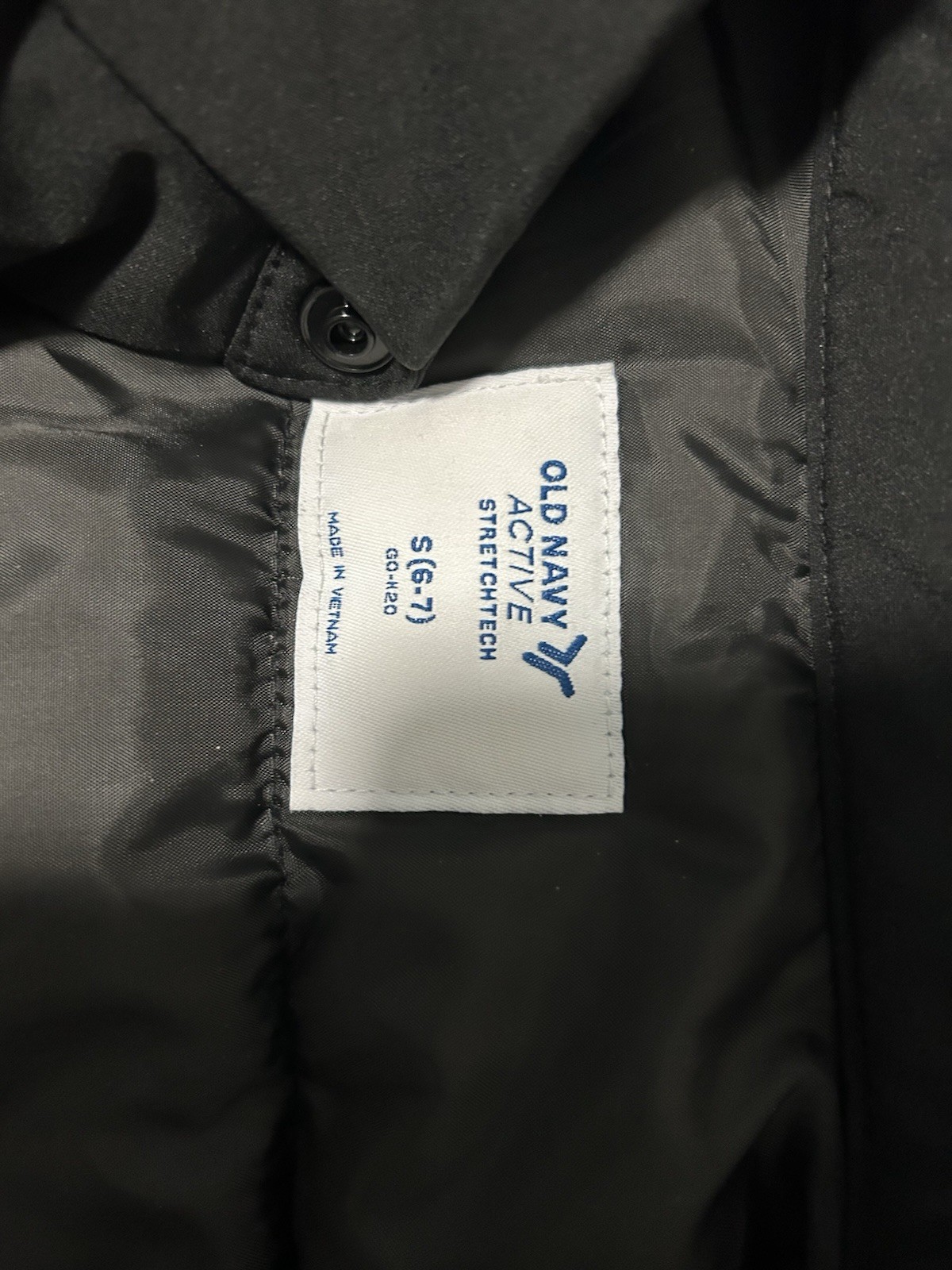 Old Navy Boys StretchTech Black Puffer Jacket S 6-7 Hooded Snap Mid-Length