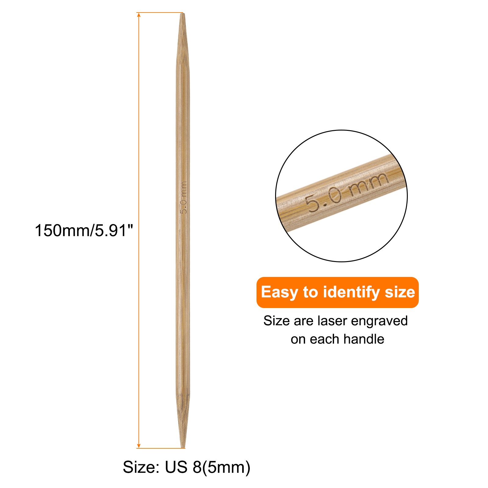 4Pcs Bamboo Knitting Needles Double Pointed Size US 8 5mm 6 Inch 15cm