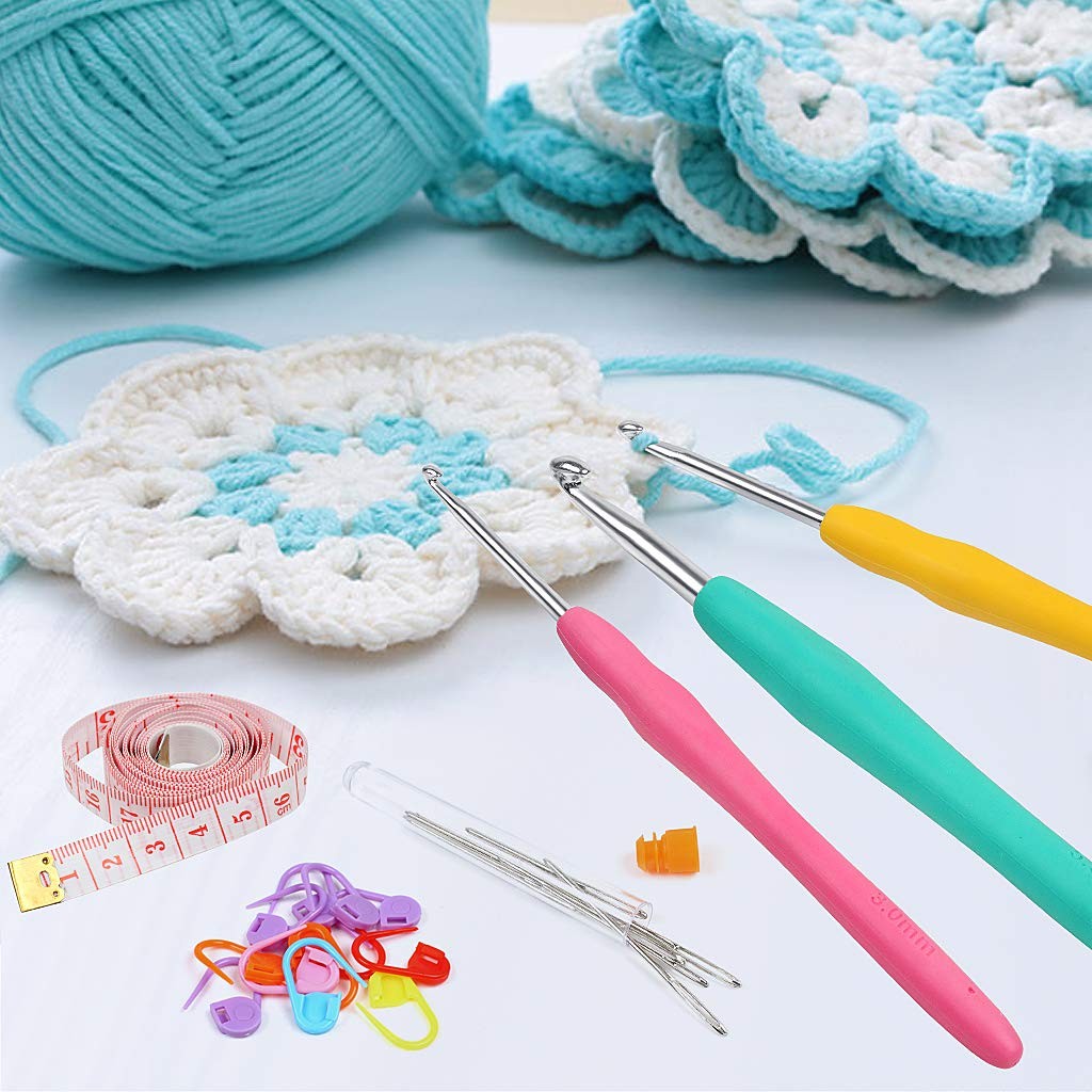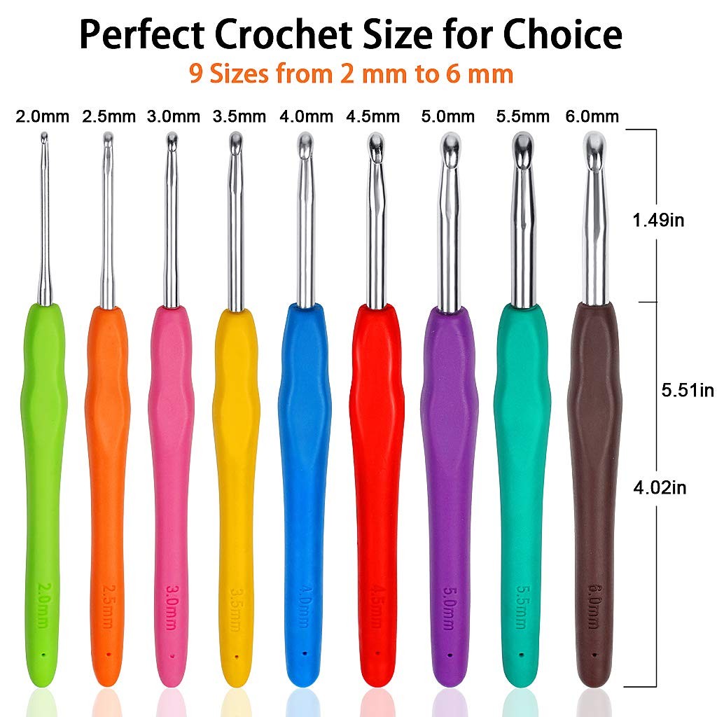 Crochet Hooks Set, 9PCS Aluminum Knitting Needles Kit Ergonomic Soft Grip Handle