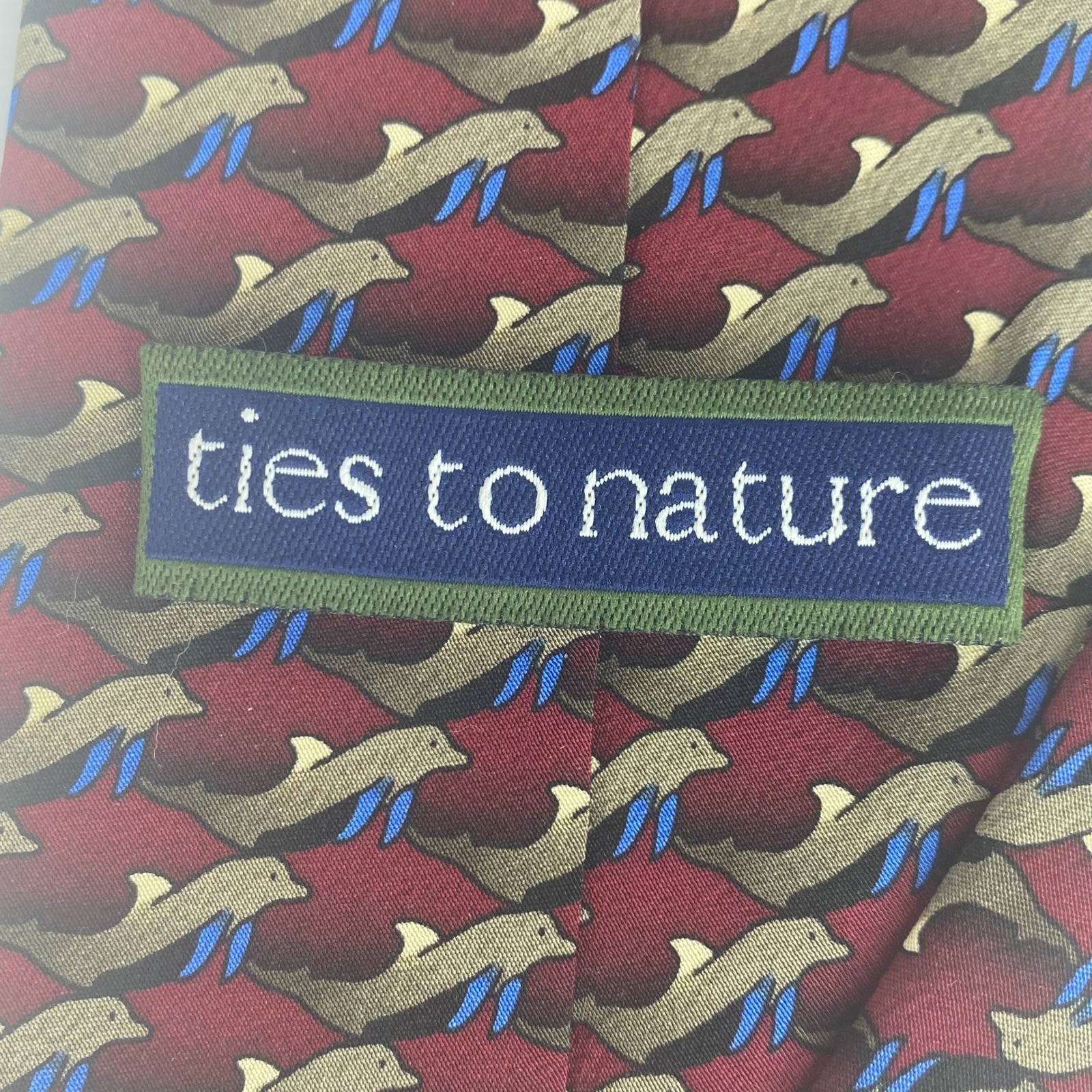 Ties to Nature Mens Neck Tie Burgundy Dolphin Porpoise Pattern Novelty Silk 59x4