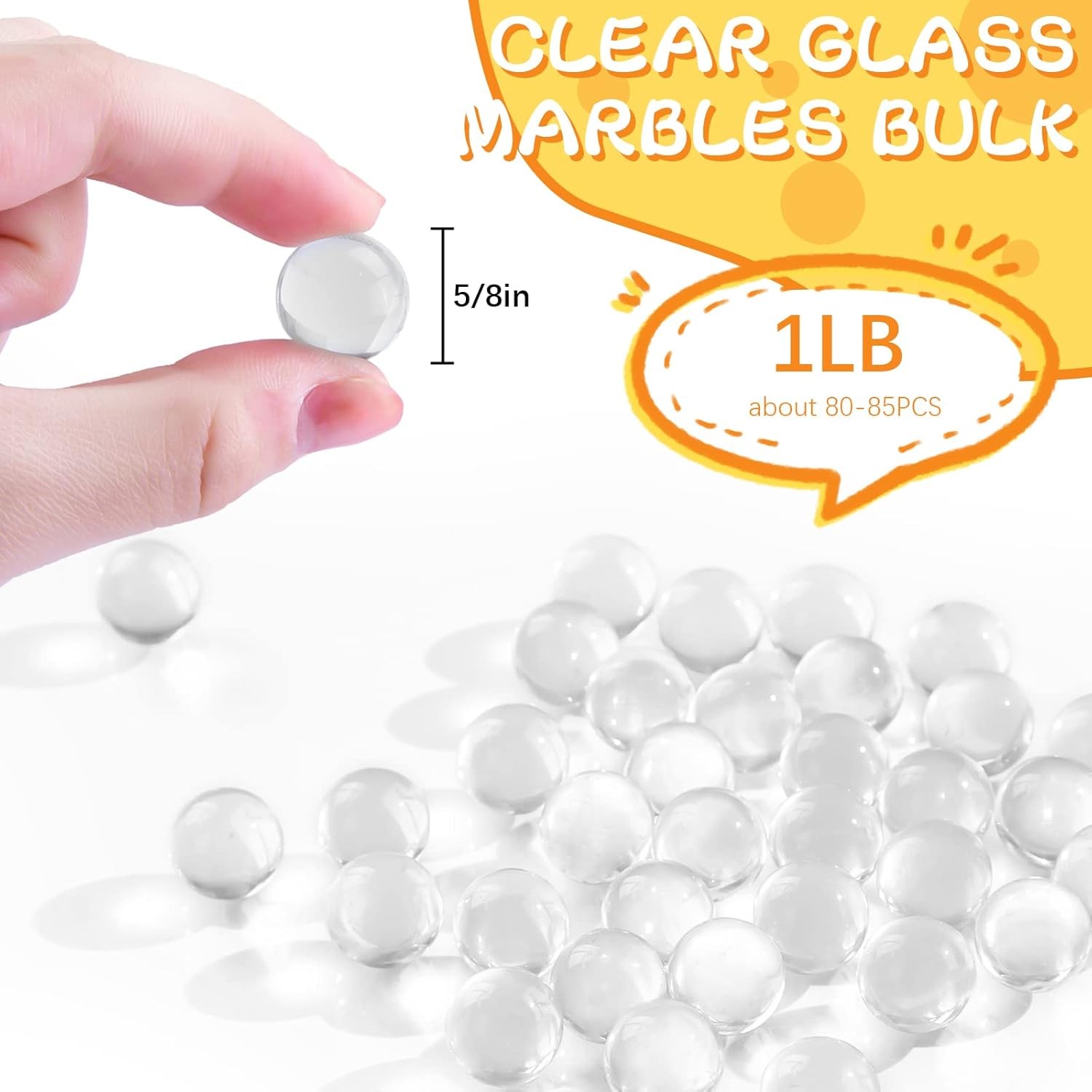 FUTUREPLUSX Clear Glass Marbles, 1LB Round Marble Beads Transparent Vase Fillers