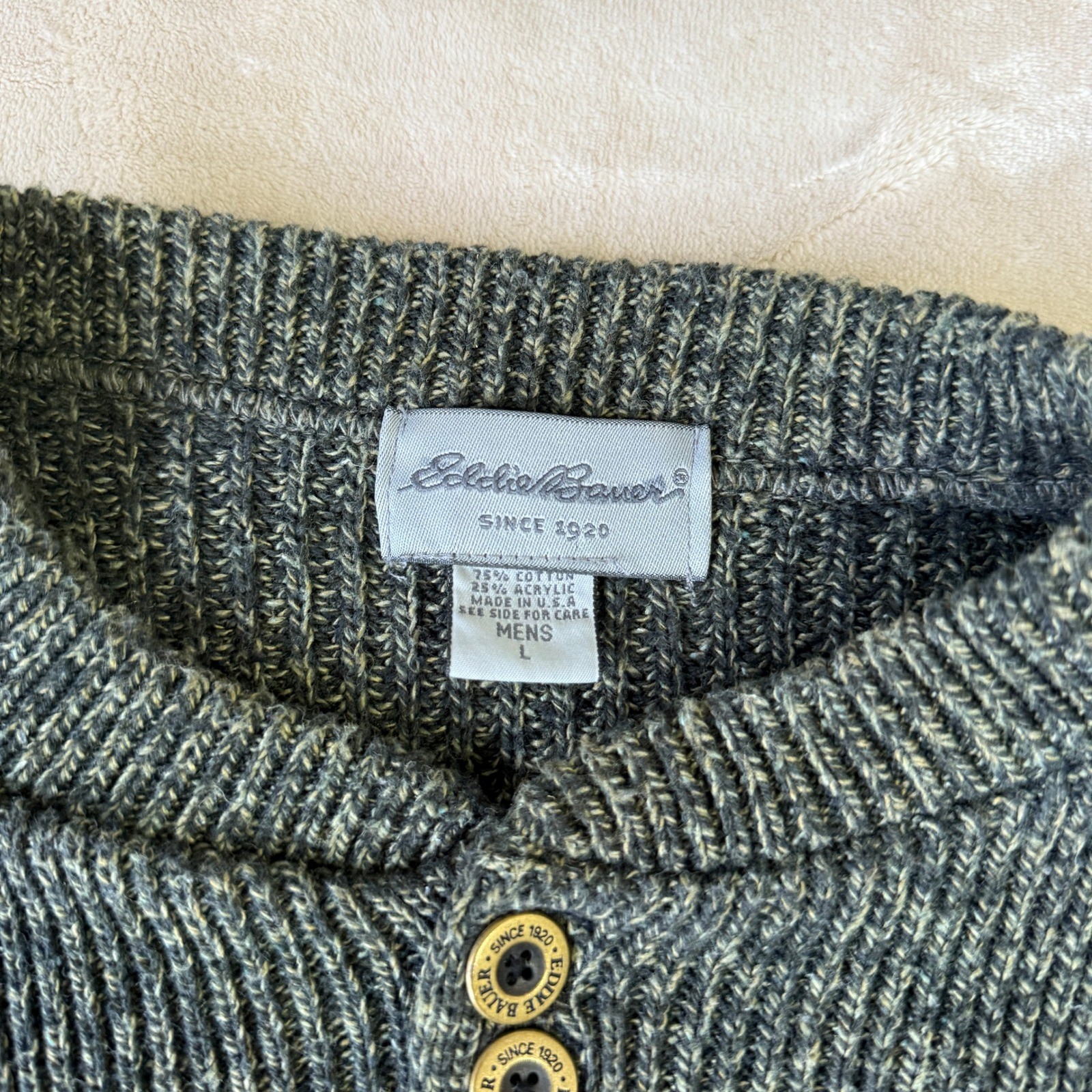 как выглядит Eddie Bauer Mens Size L Green Textured Henley Button Neck Sweater фото