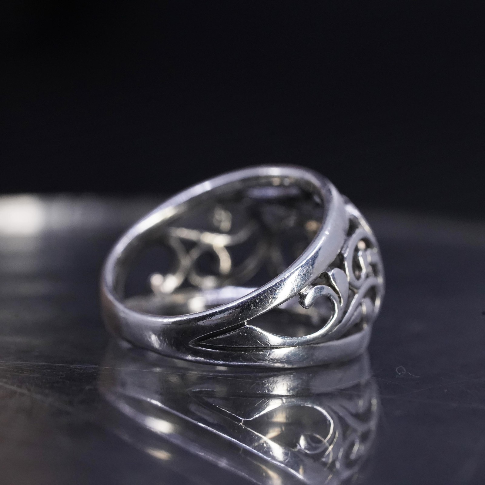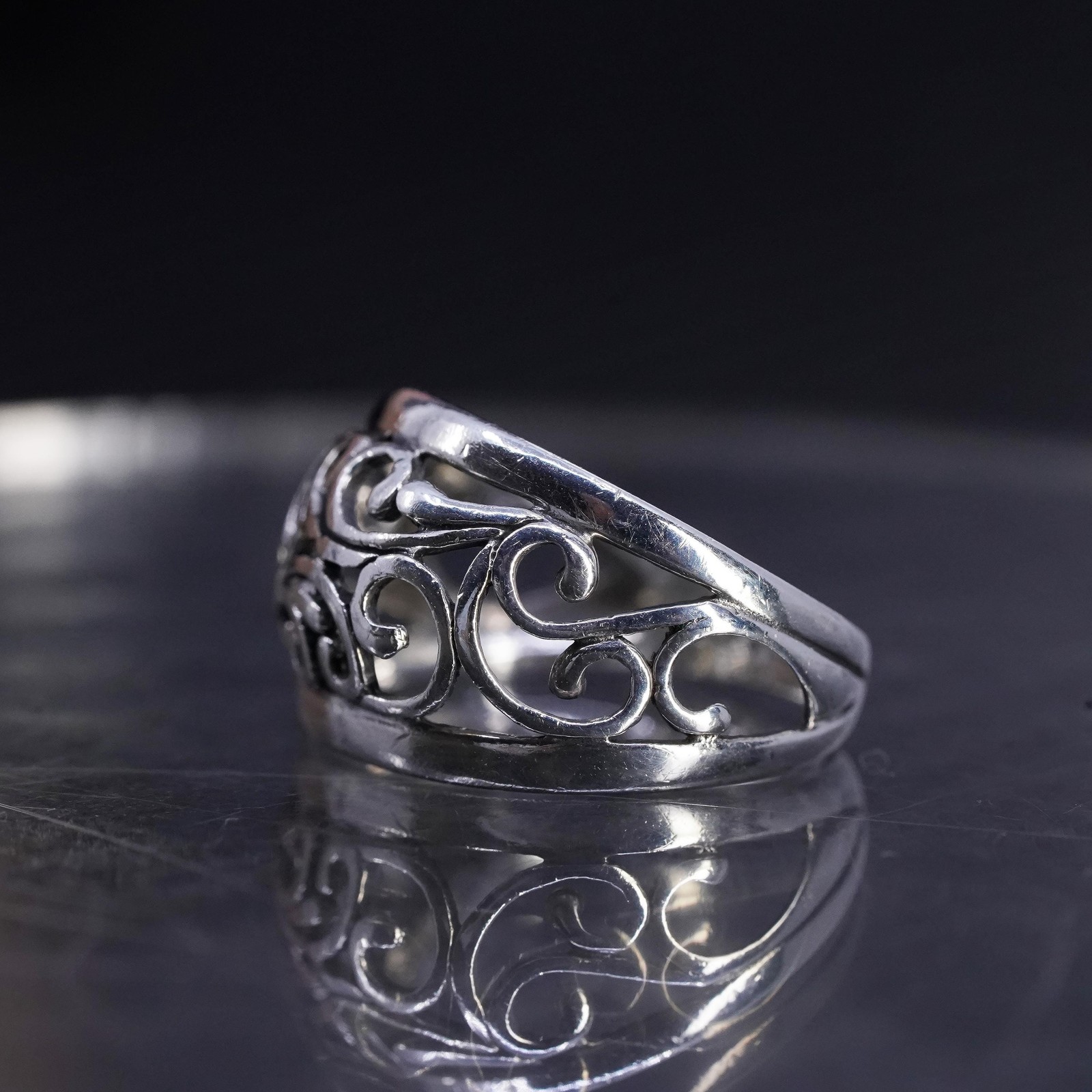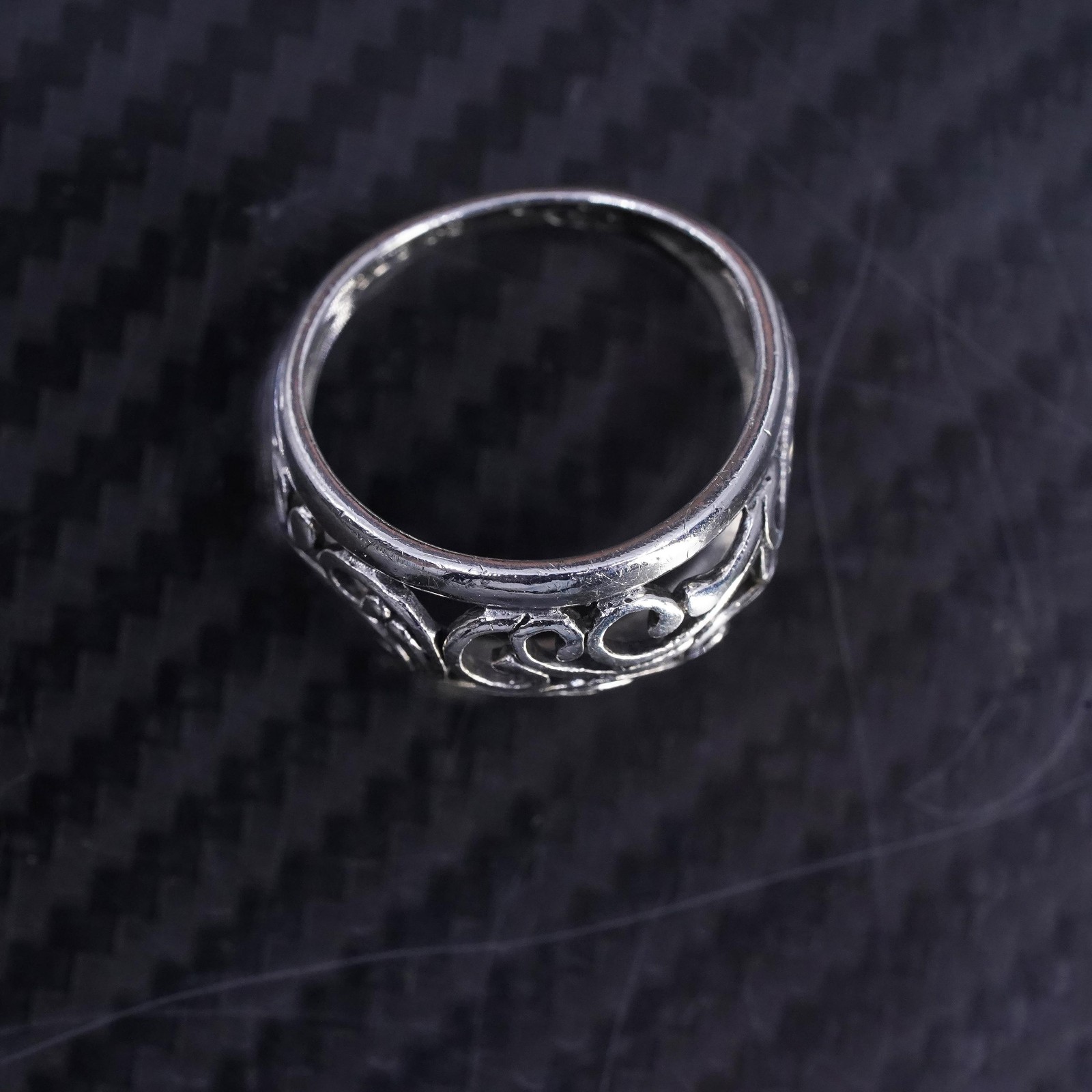 size 6, vintage signed Sterling silver handmade ring, 925 filigree wavy band