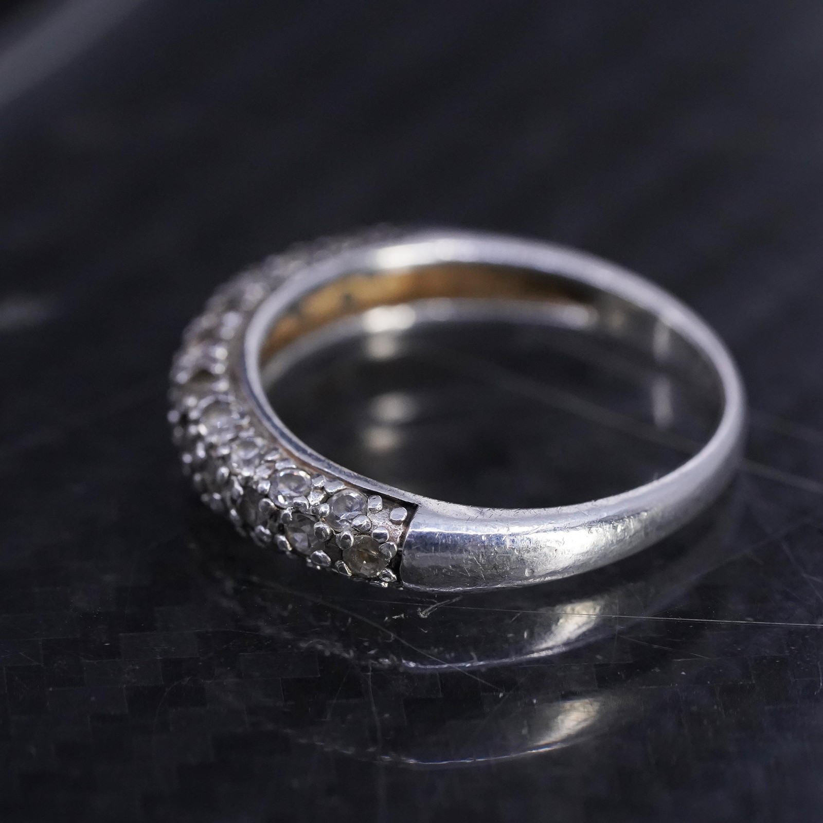 Size 7.5, vintage sterling silver 925 stackable band ring with cluster cz