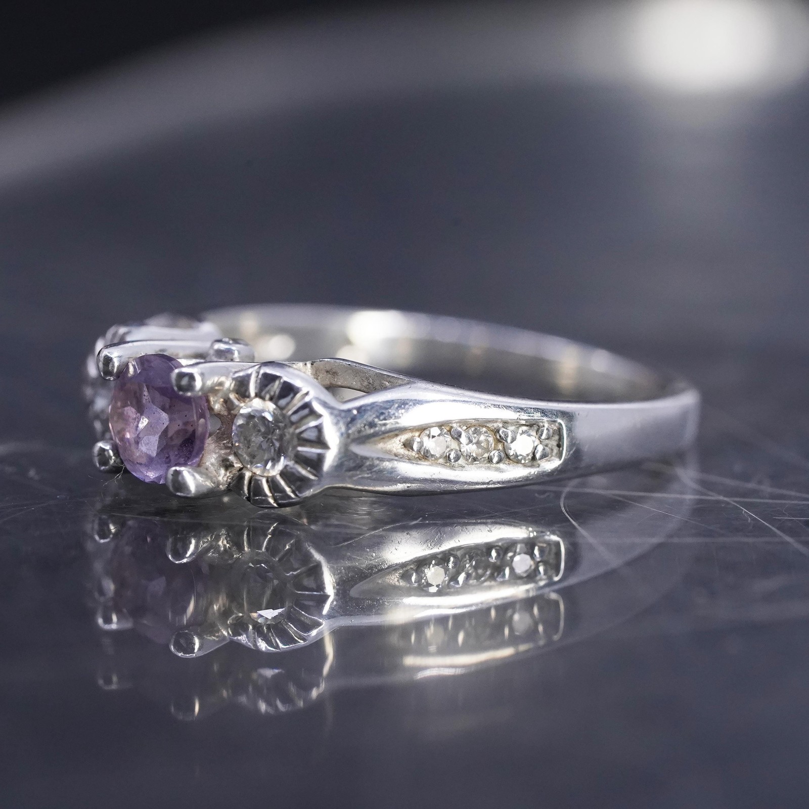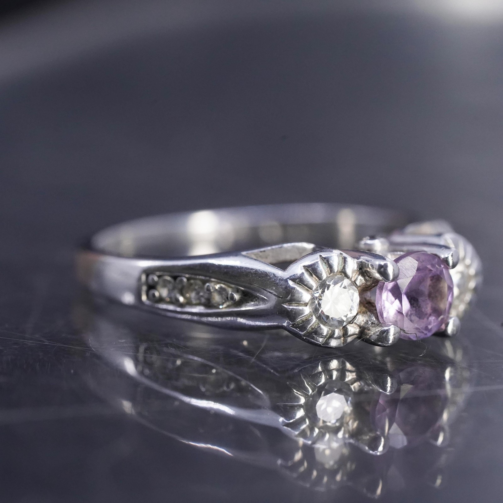 Size 8, vintage sterling silver 925 statement ring with amethyst and cz