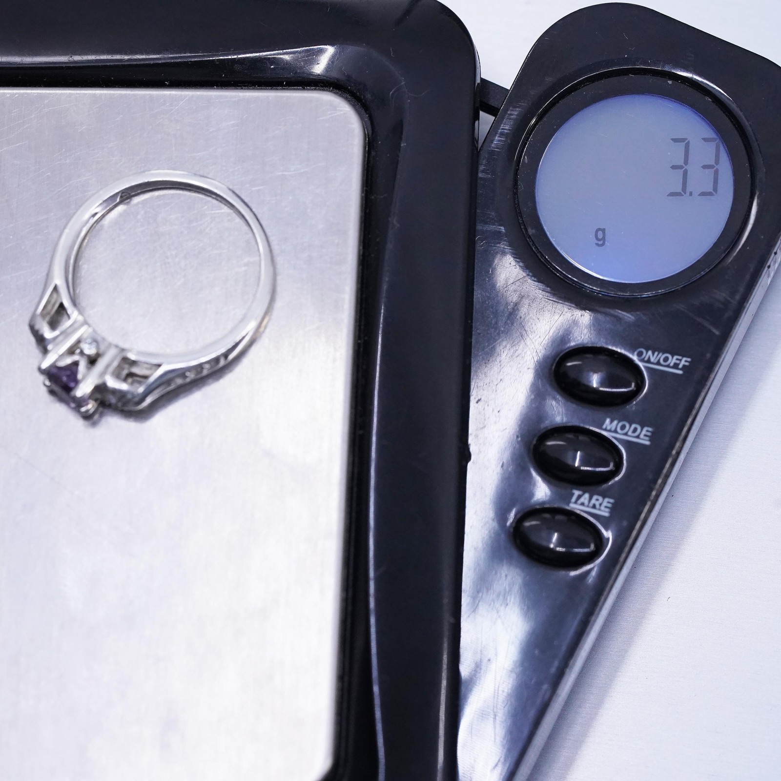 как выглядит Size 8, vintage sterling silver 925 statement ring with amethyst and cz фото
