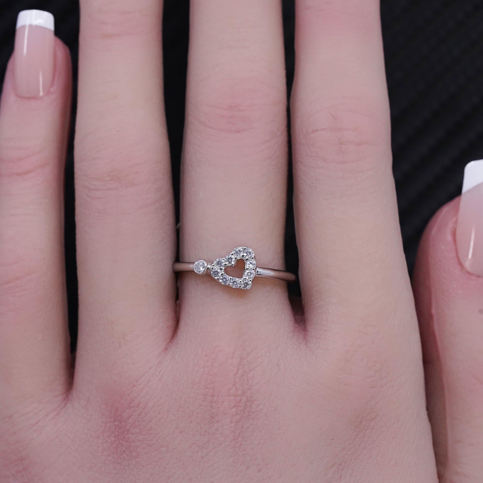 как выглядит Size 7, vintage sterling silver 925 statement heart ring with cz фото