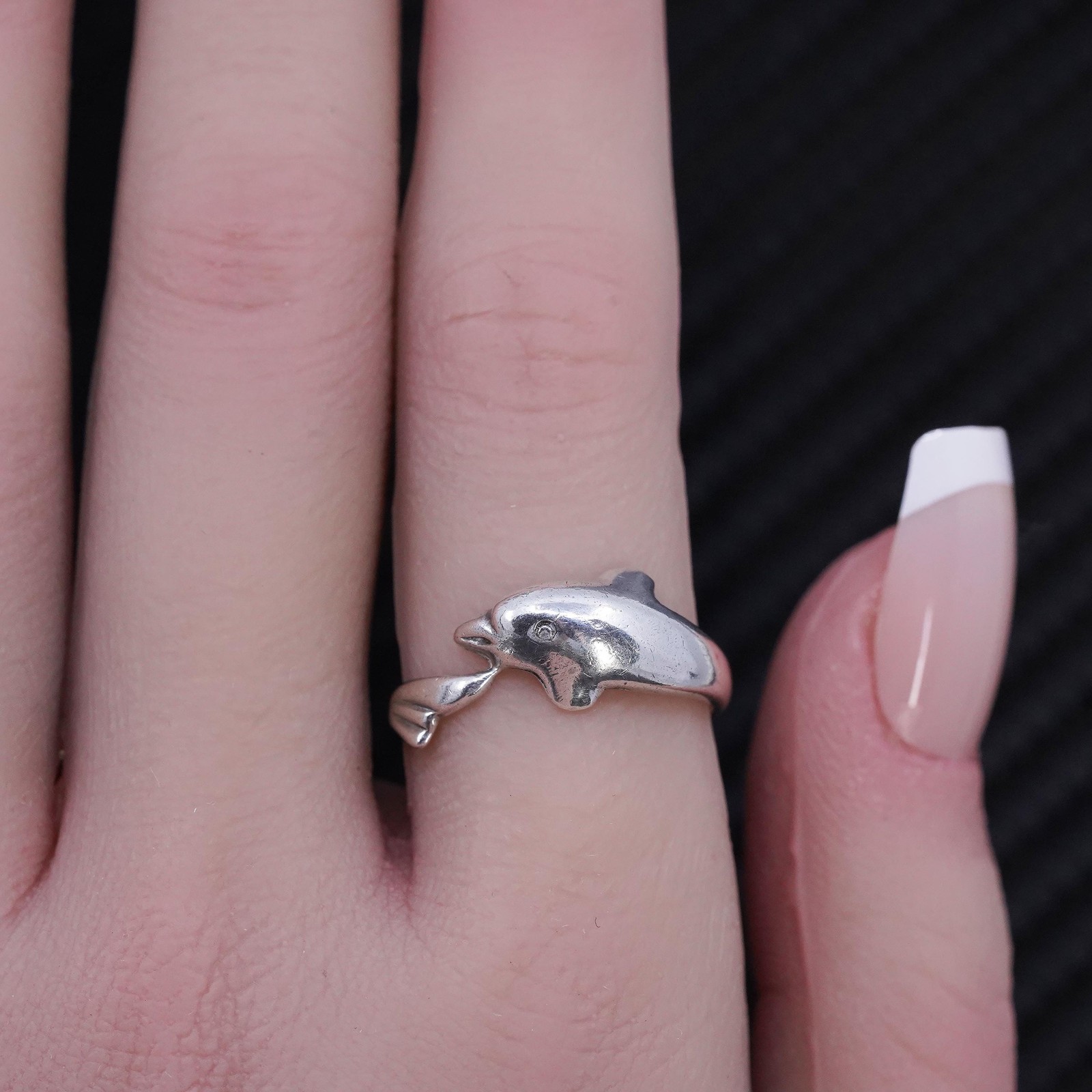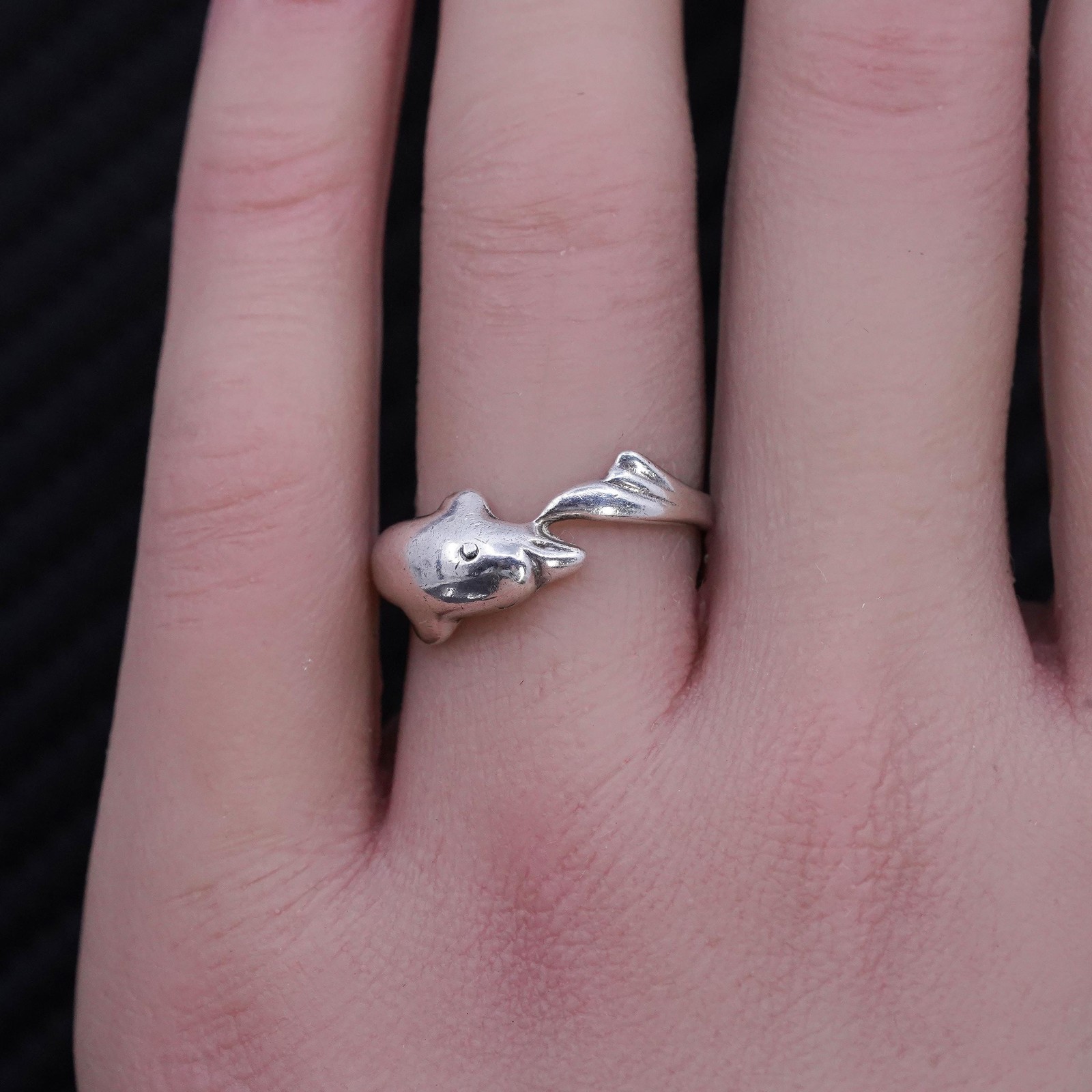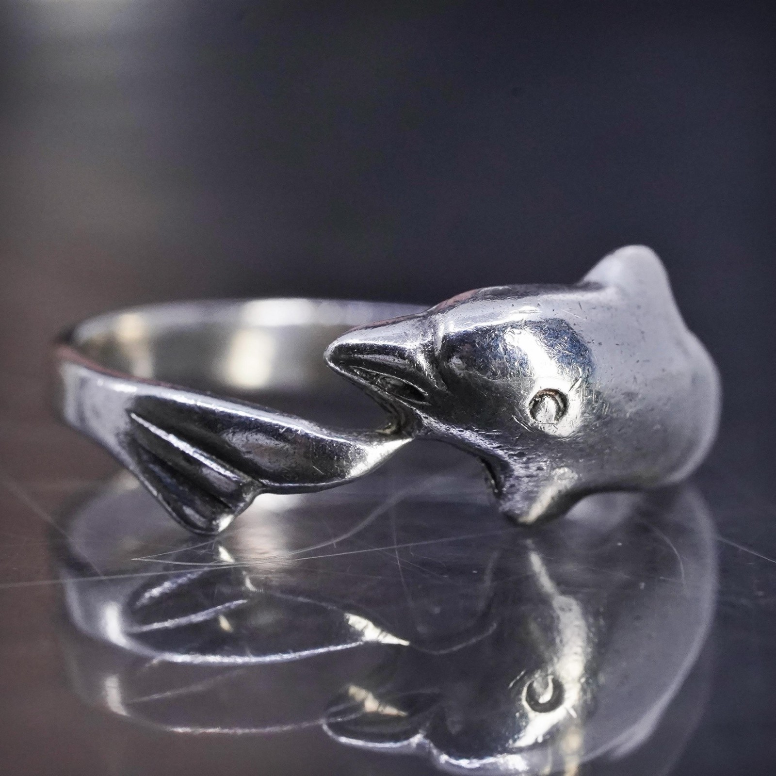 как выглядит size 7, vintage southwestern sterling silver 925 handmade dolphin band ring фото