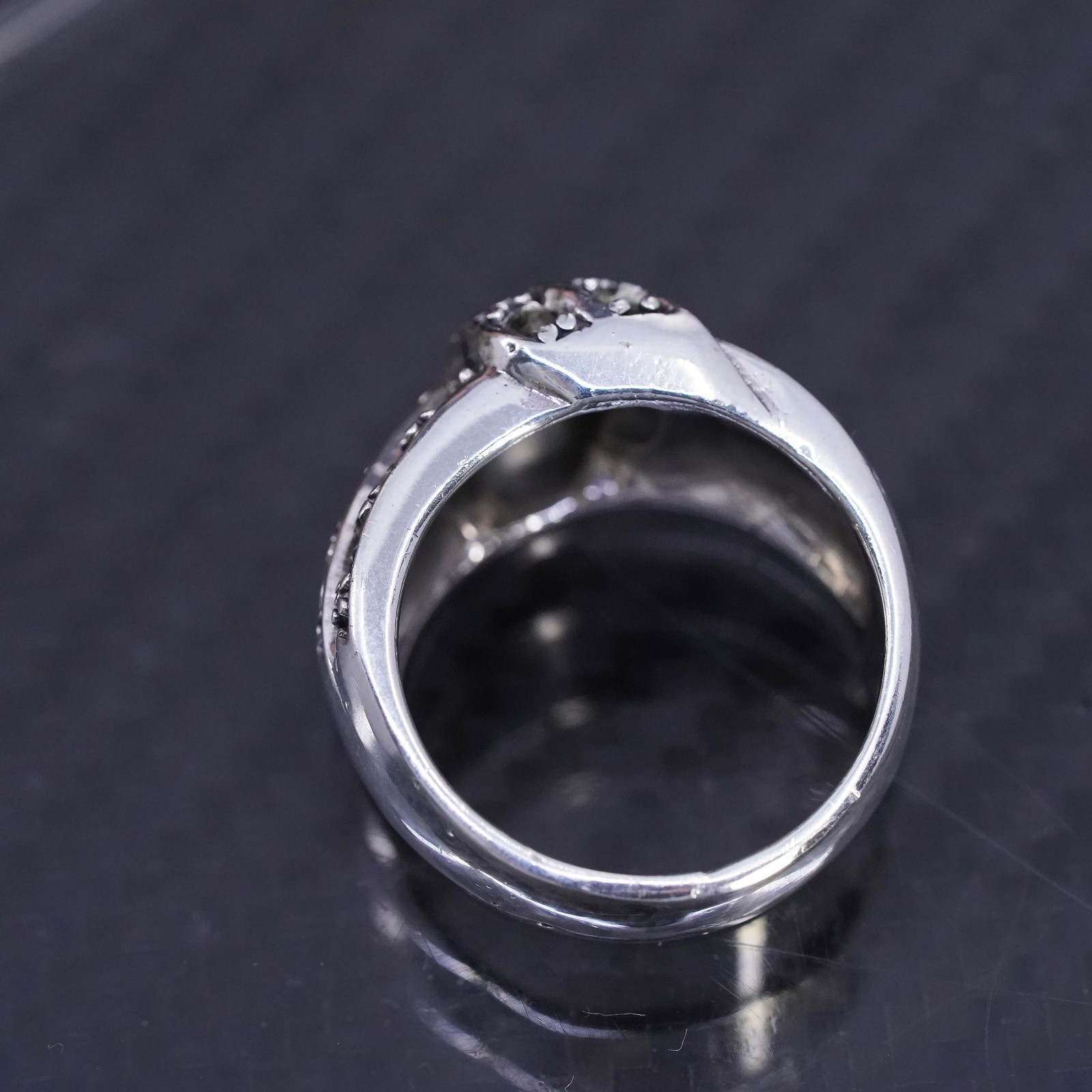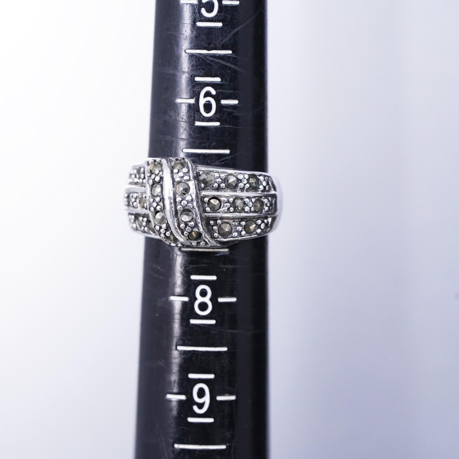 как выглядит Size 7, vintage sterling silver 925 statement band ring with cluster marcasite фото