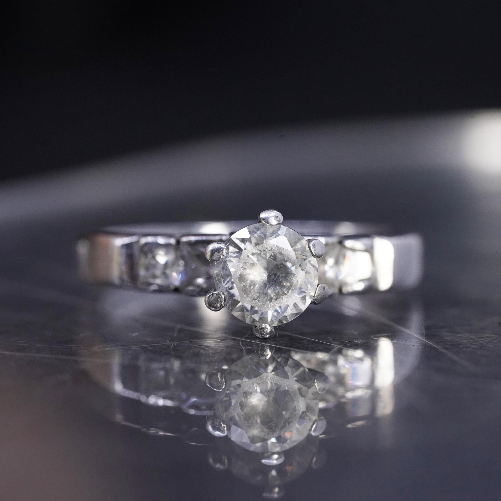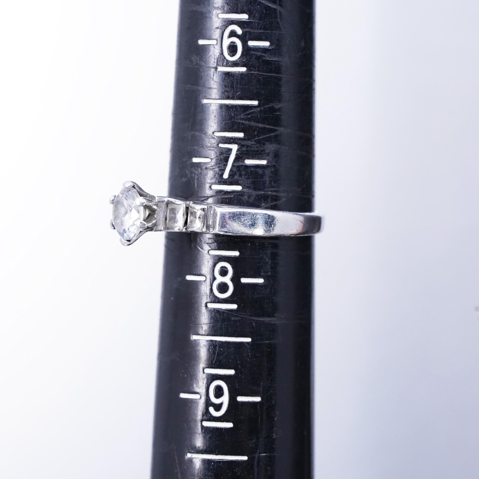 Size 7.5, vintage sterling silver 925 engagement ring with cz