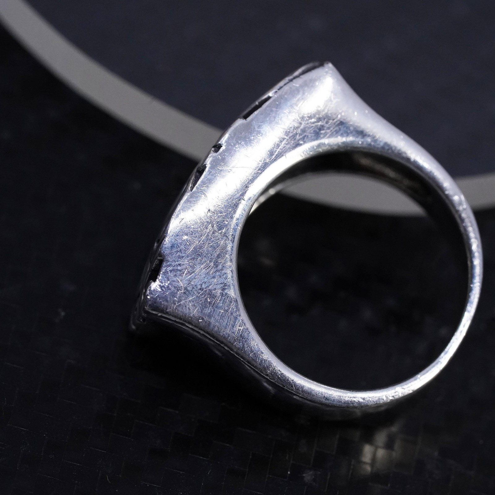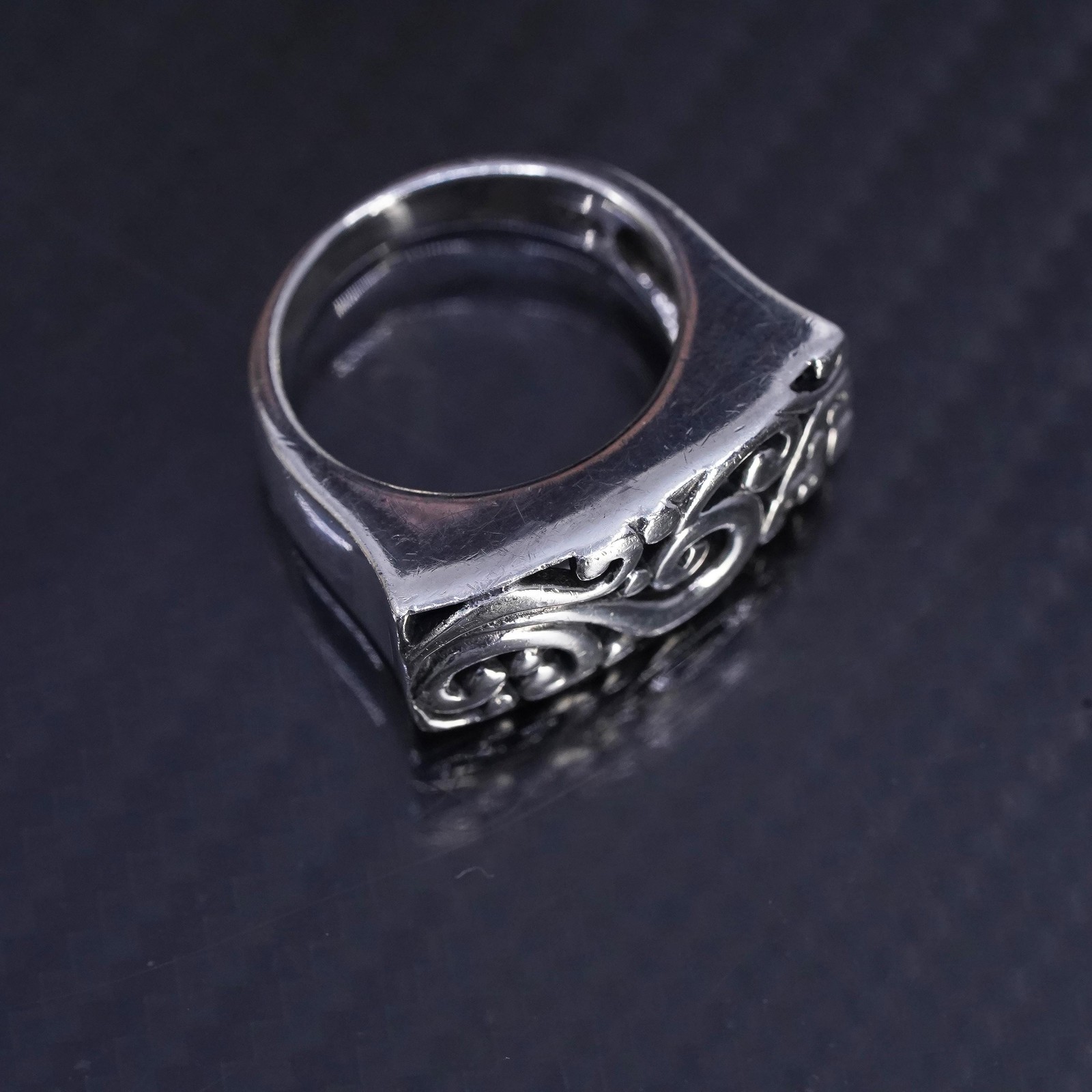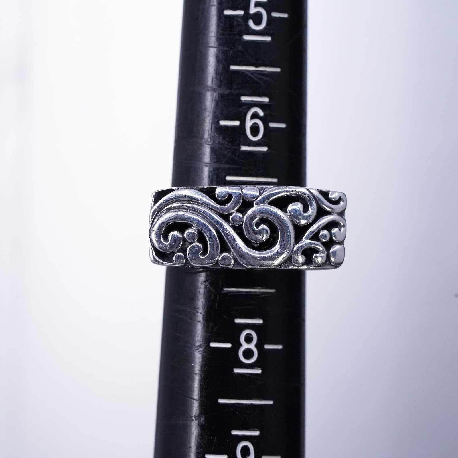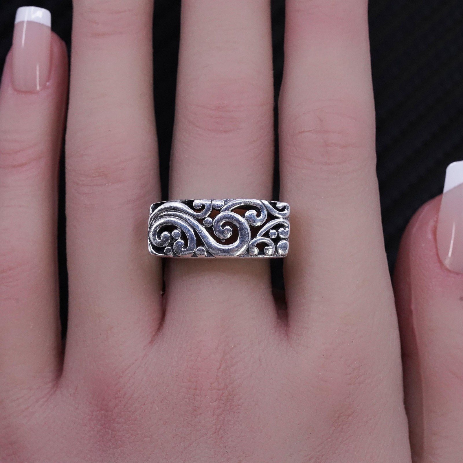 как выглядит size 7, VTG Sterling silver handmade ring, 925 filigree spiral statement band фото
