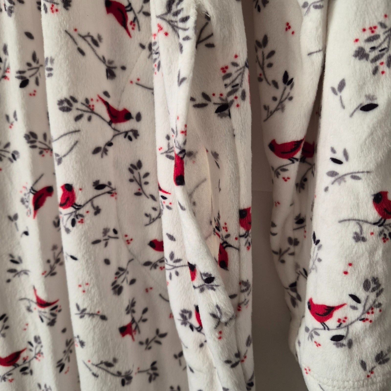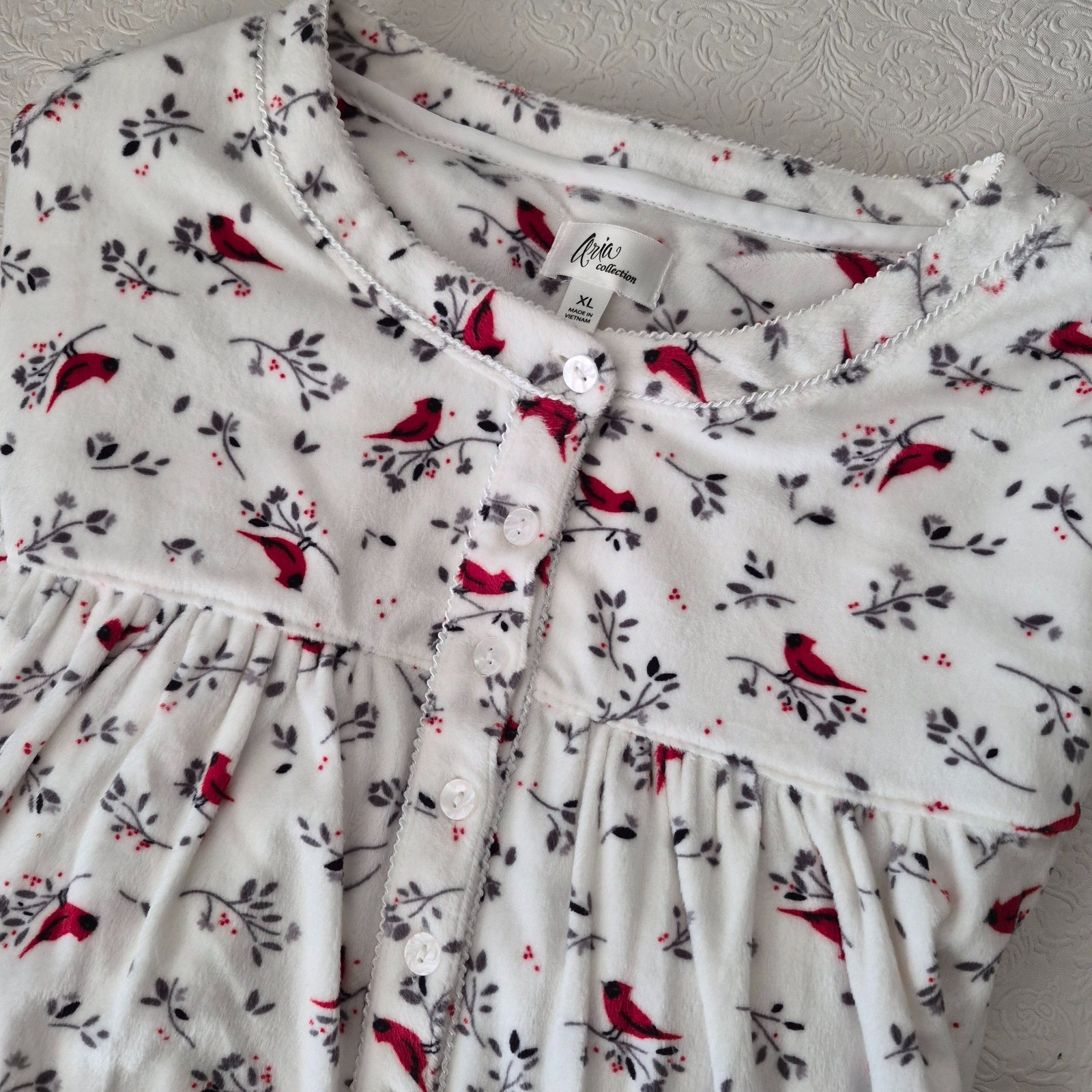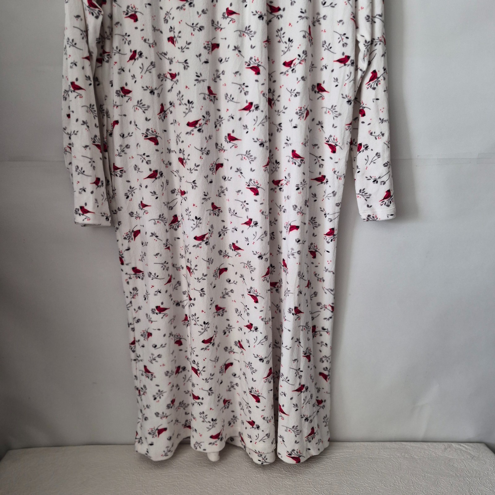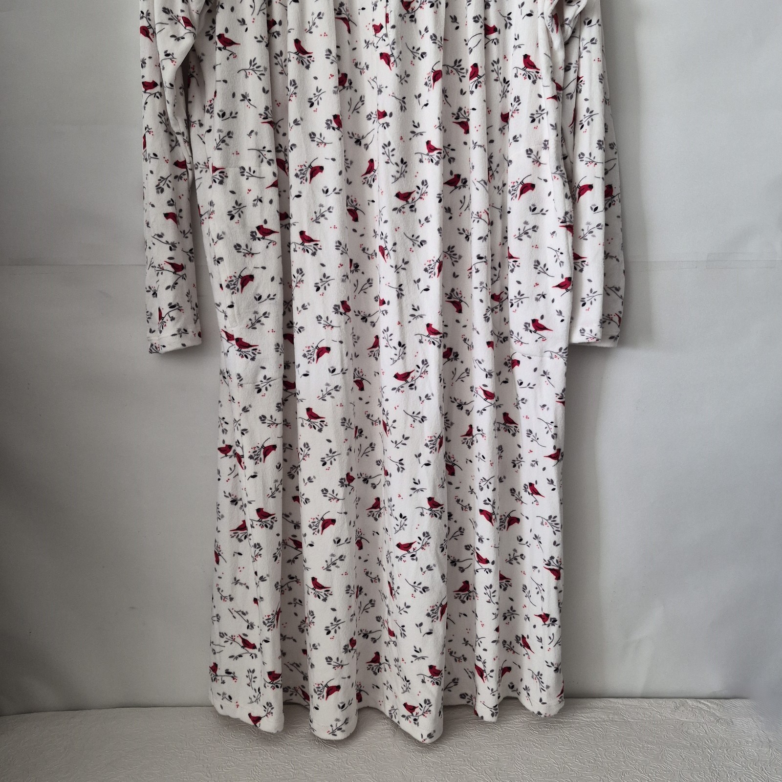 Aria Womens XL White Red Cardinal Floral Long Sleeve Velour Nightgown Pockets