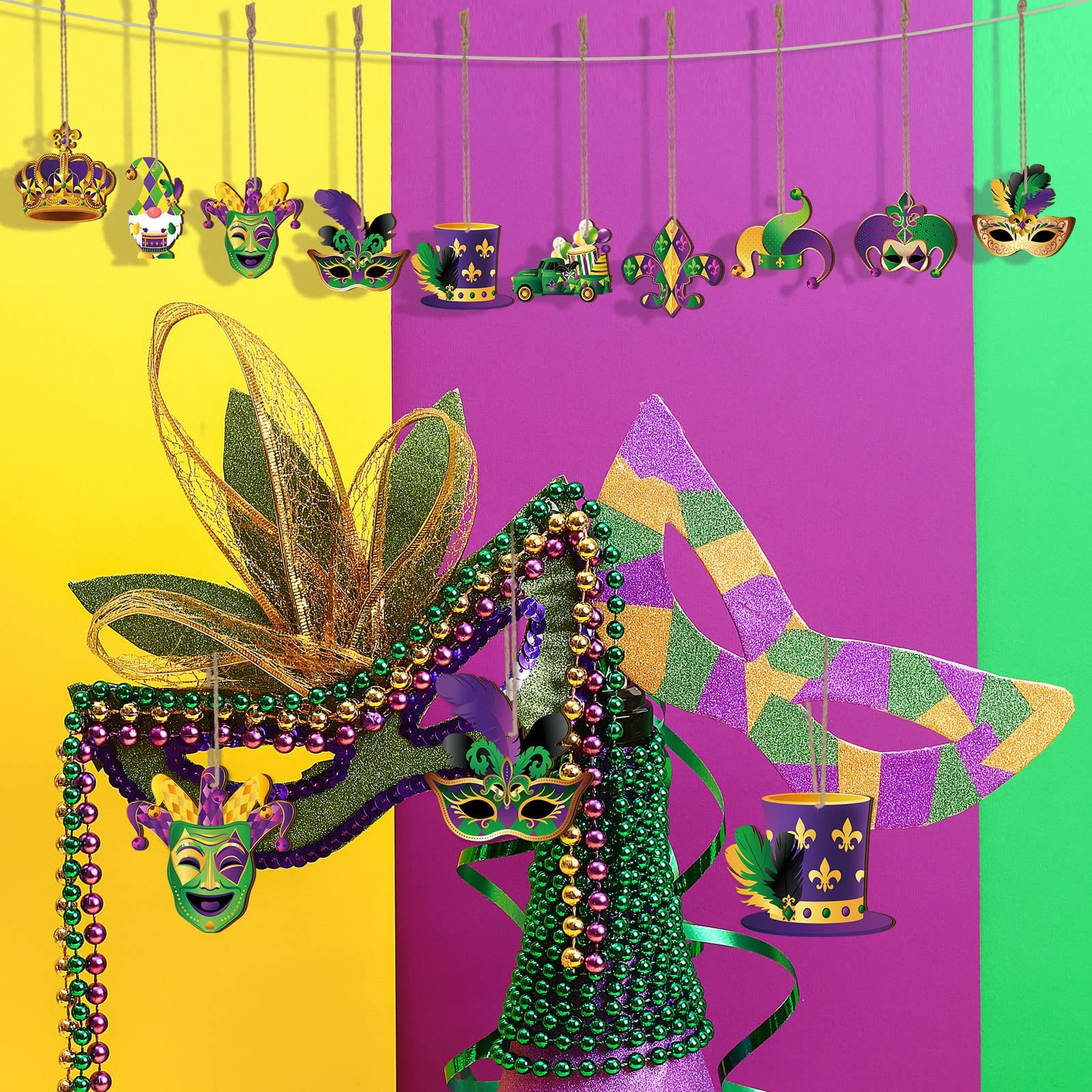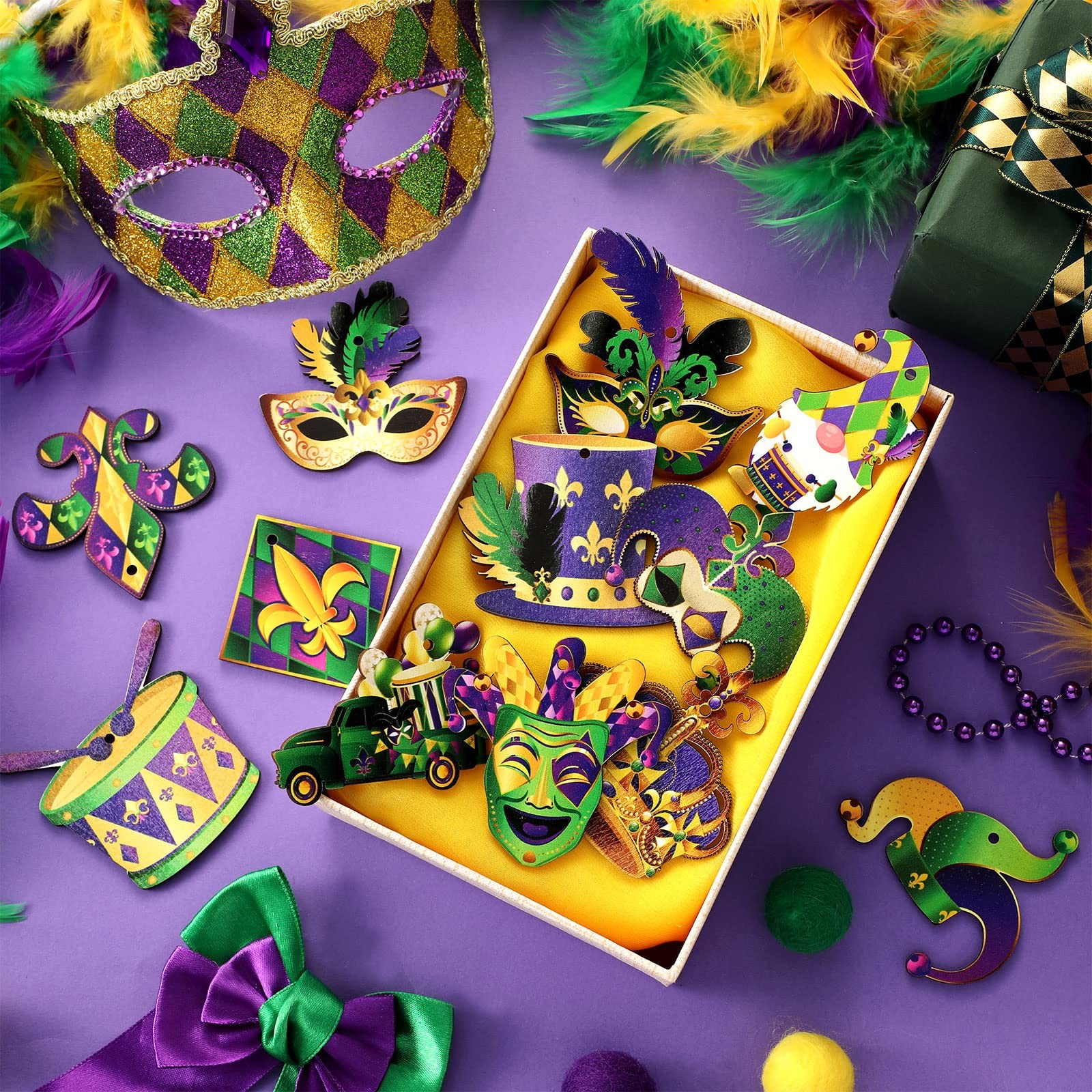 24 Pcs Mardi Gras Wooden Hanging Ornaments Mardi Gras Decorations Purple Yell...