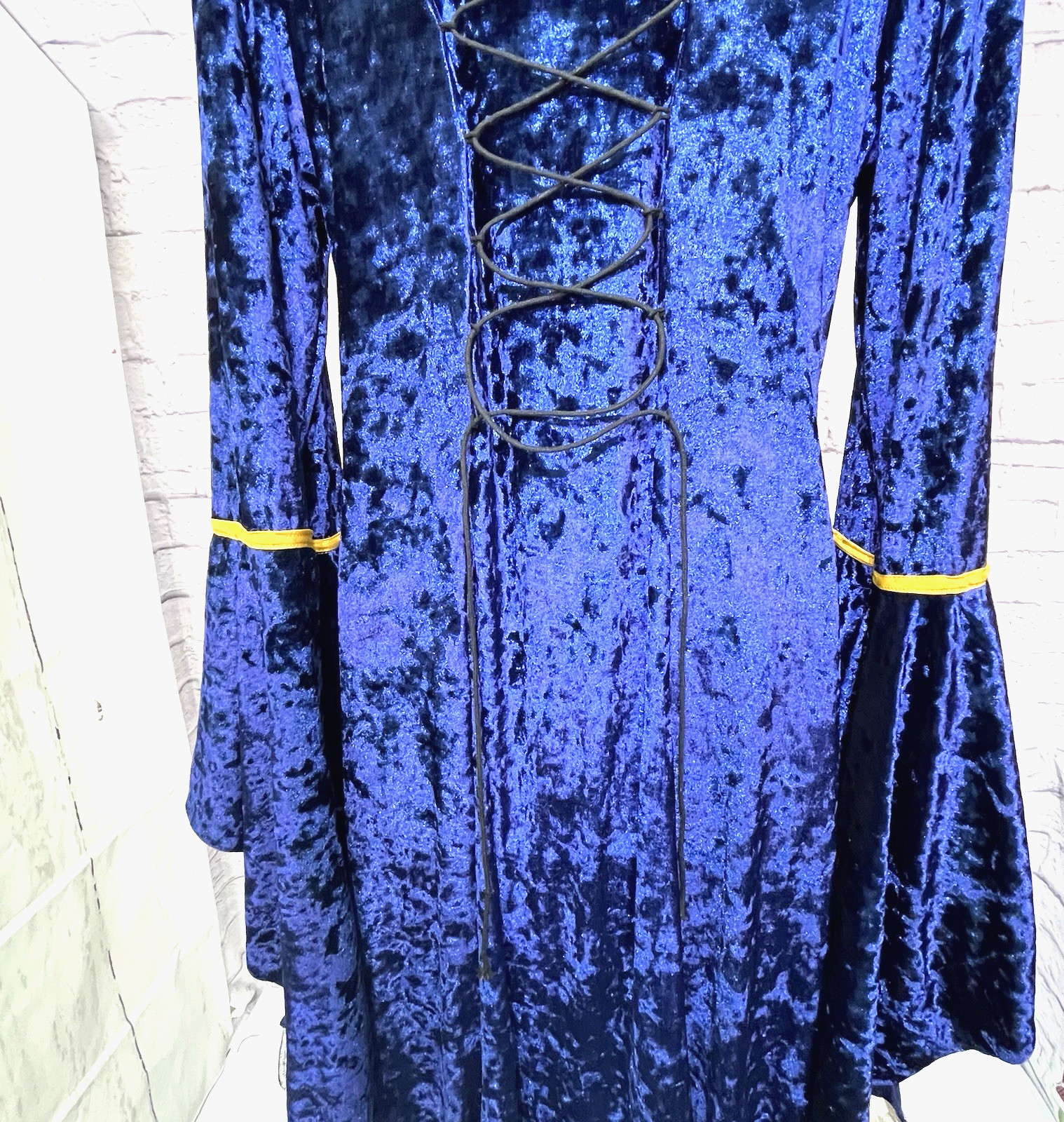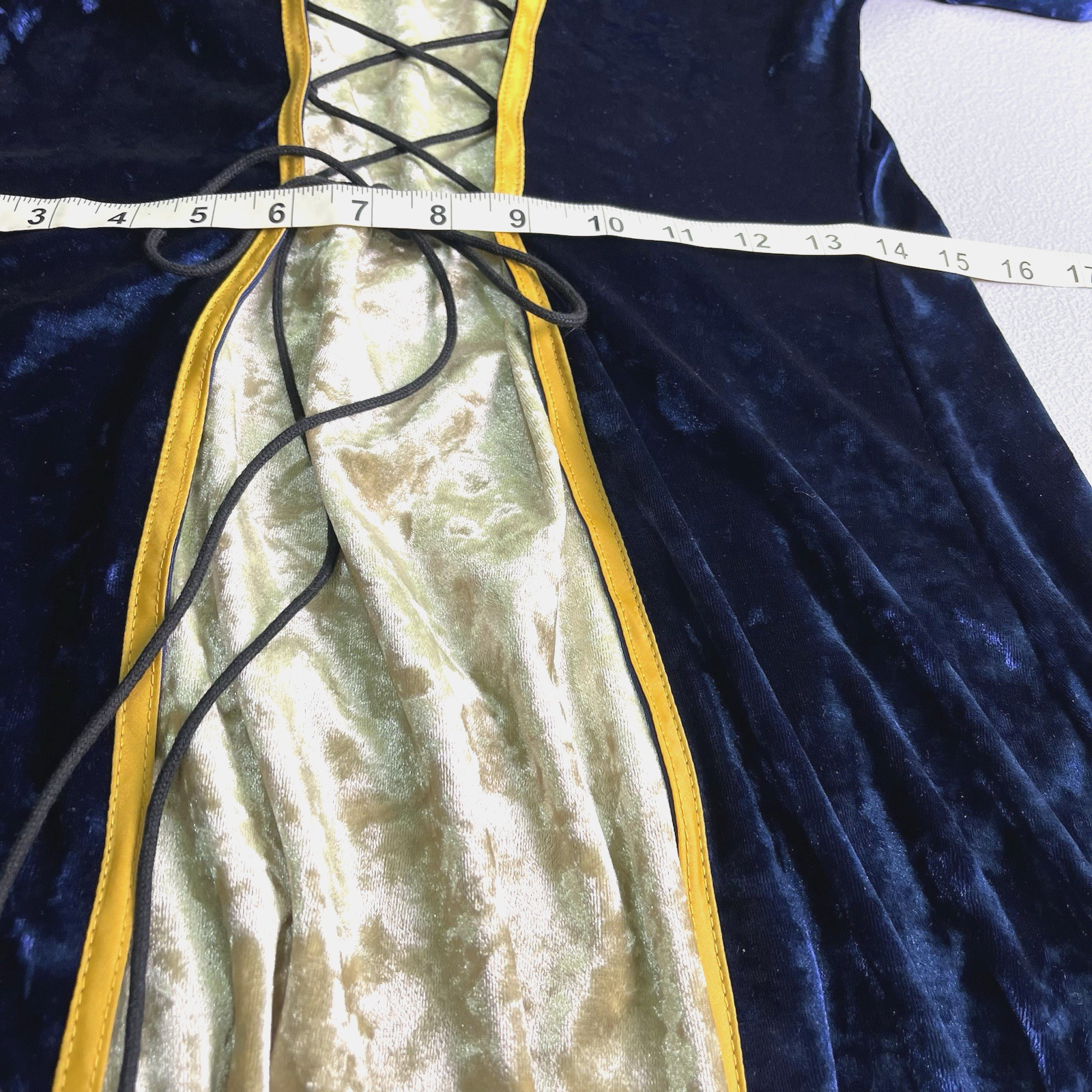 как выглядит Gothic Medieval Renaissance Small Dress Cosplay Gown Royal Blue Gold Trim фото