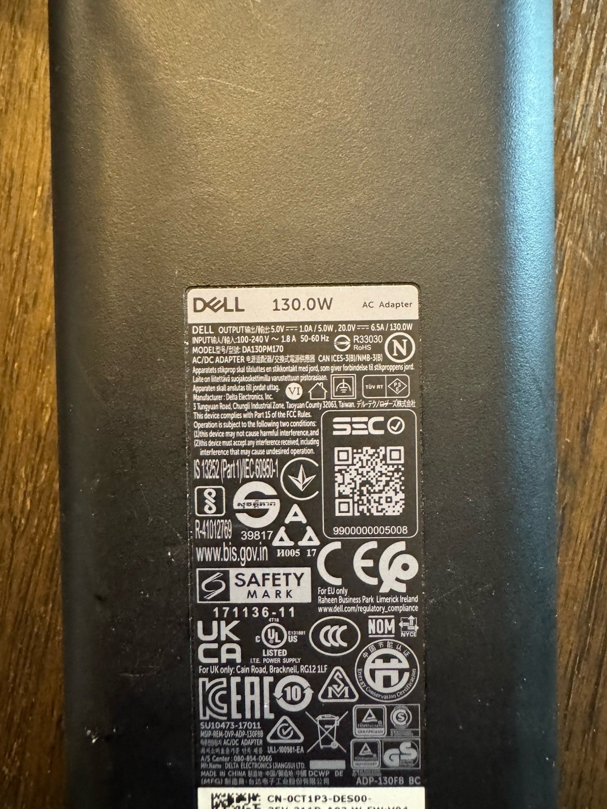 как выглядит Dell 130W USB-C AC Power Adapter DA130PM170 фото